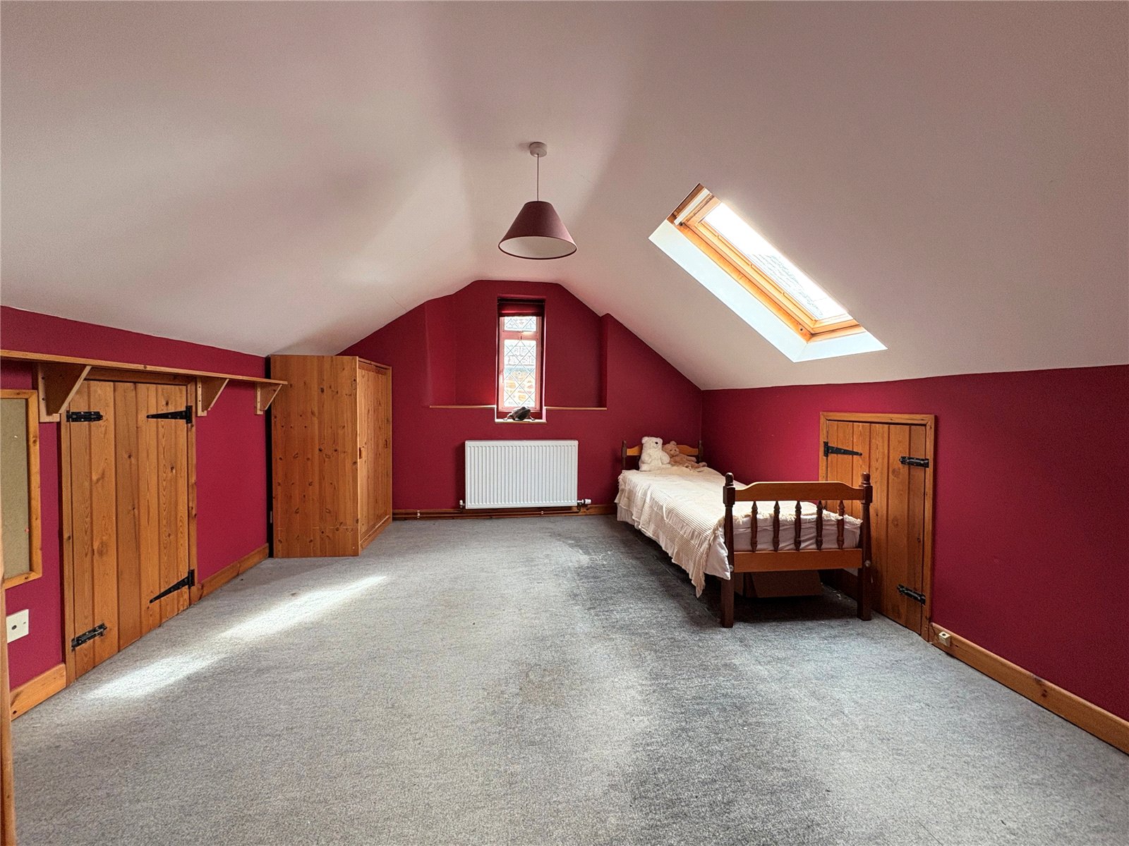 Bedroom Two 12'7" x 11' (3.84m x 3.35m). Another generous sized bedroom with a dual aspect, timber doors to each side of the room give access to eaves storage space, television point, Upvc double glazed window to side aspect with timber sill, Velux window to front aspect