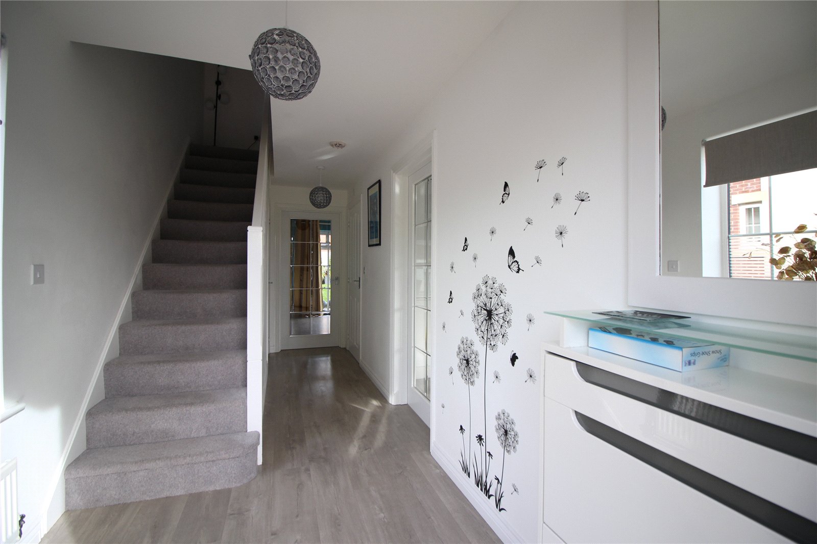 Entrance Hall 18' x 6'4" (5.49m x 1.93m). A beautifully presented and a good size entrance hallway which measures 18' in length and sets the scene for this family home as you enter, stairs rising to first floor landing with white spindled balustrades and storage cupboard under, wood laminate flooring, single panel radiator, Upvc double glazed window to side aspect, white panel door to cloakroom, glazed doors to kitchen and lounge