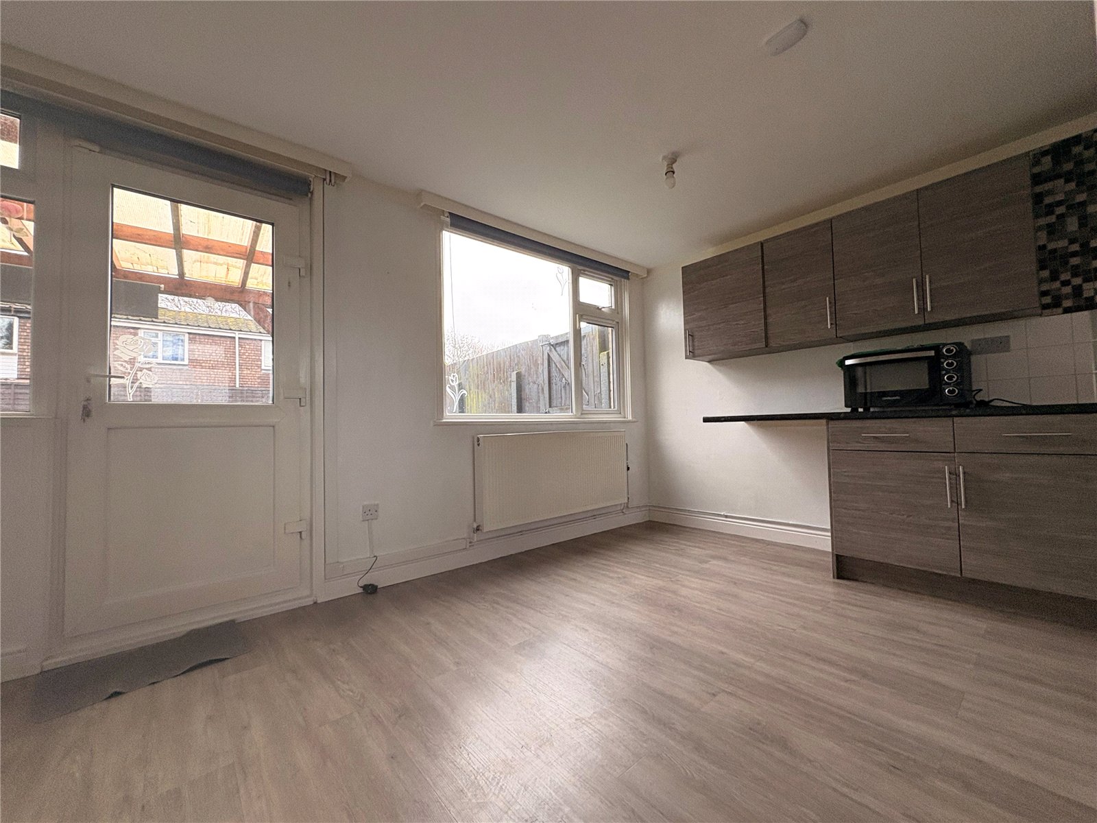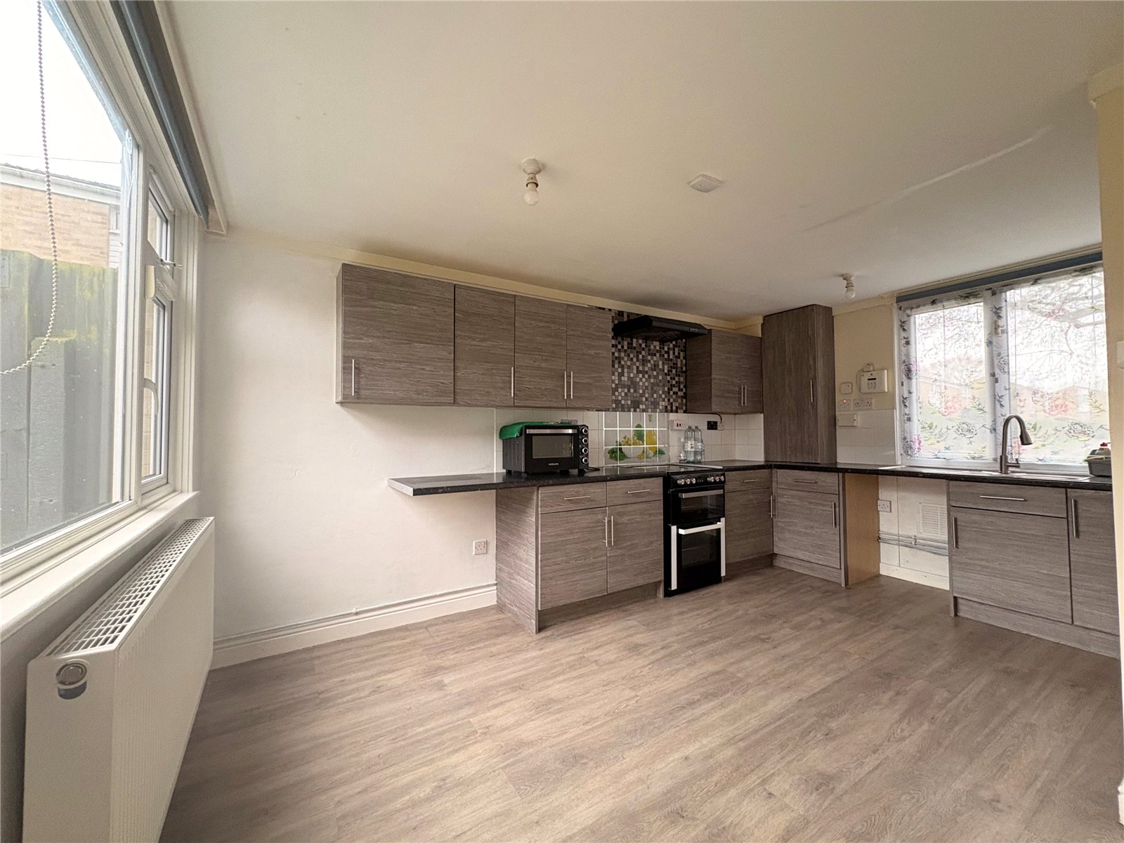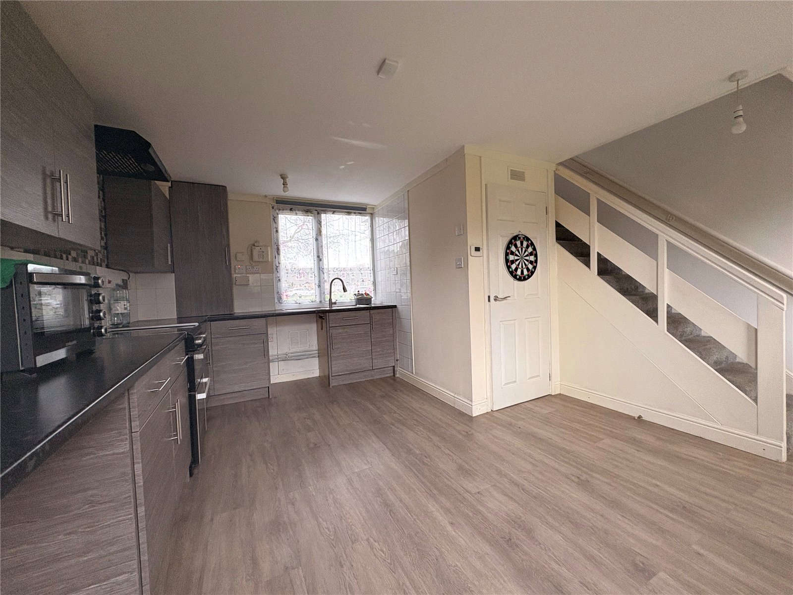 Kitchen Diner 15'1" (4.6m) reducing to 8'7" (2.62m) x 14'10" (4.52m). A dual aspect and good size room which is laid out with kitchen to the front and dining area to the rear overlooking the garden. Two Upvc double glazed windows and door to rear and Upvc double glazed window to front aspect. The kitchen is fitted with a range of eye and base level units with rolled edge work surfaces over, the base units are drawer line and offer space for gas cooker, space and plumbing for washing machine, space for tumble dryer, space for full height fridge/freezer, tiling to water sensitive areas, stainless steel single drainer sink unit with flexi hose spray tap, gas combination boiler concealed behind a cupboard door, thermostat control, single panel radiator, stairs rising to first floor, multi-pane door to: