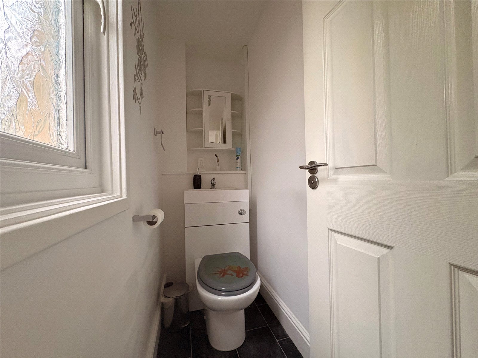 Separate WC 6' x 2'7" (1.83m x 0.79m). Fitted with a replacement concealed cistern WC with wash hand basin above, Upvc double glazed window to front aspect.