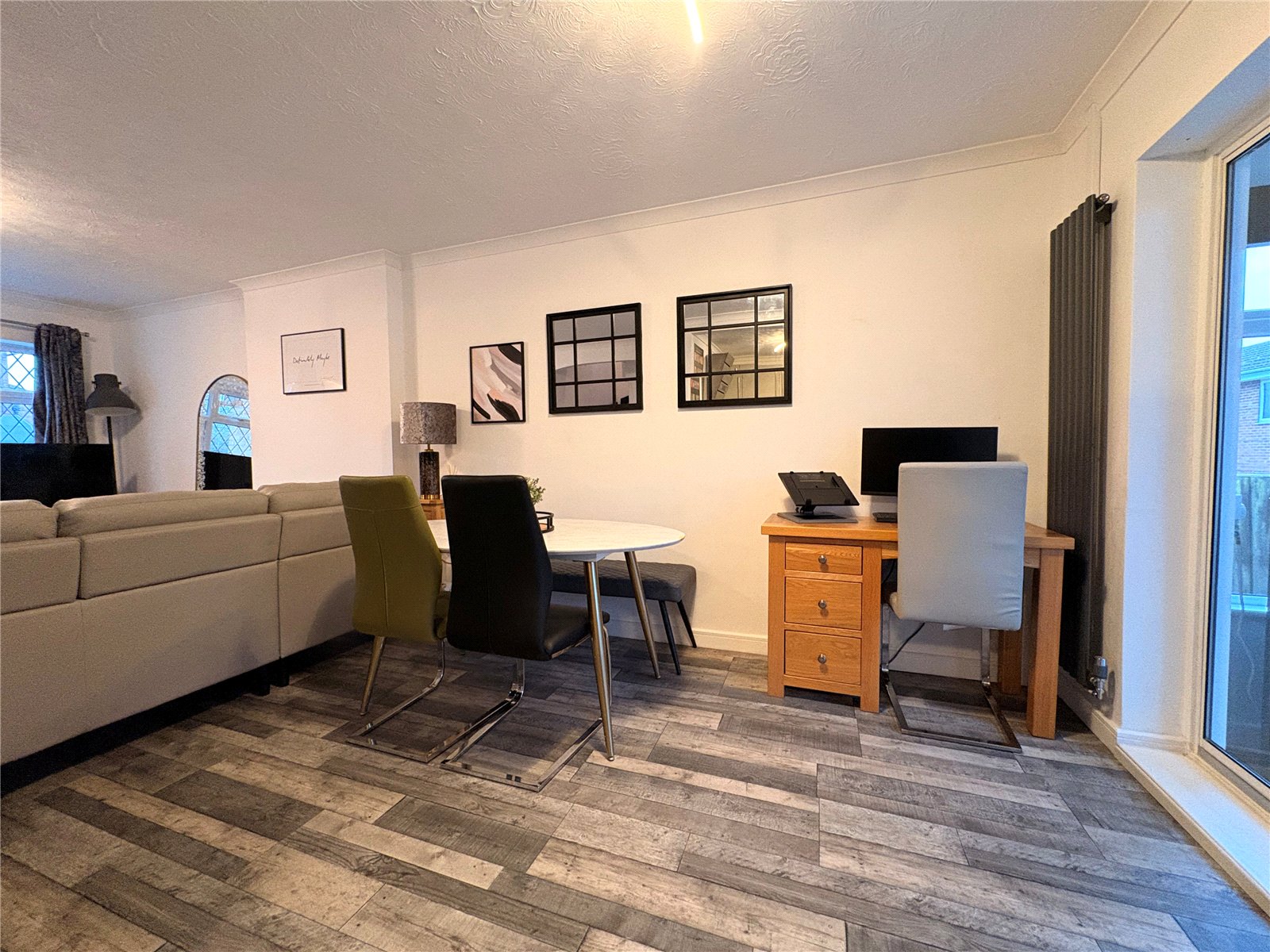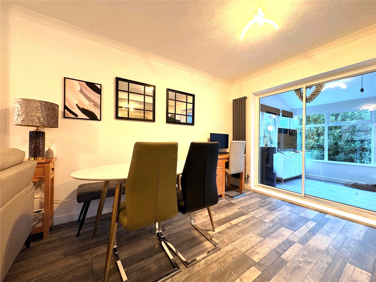 Dining Area 9'1" x 7'8" (2.77m x 2.34m). Open plan from the living area and with a continuation of the wood effect laminate flooring, vertical radiator, coving to ceiling, ample space for table and chairs, sliding patio doors to conservatory, open into :-