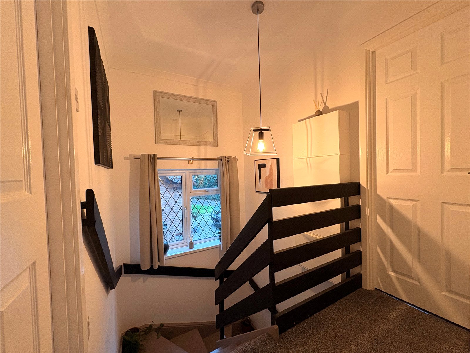 Landing Upvc double glazed window on the turn of the stairs, access to loft space, smoke alarm, white panel doors to first floor accommodation