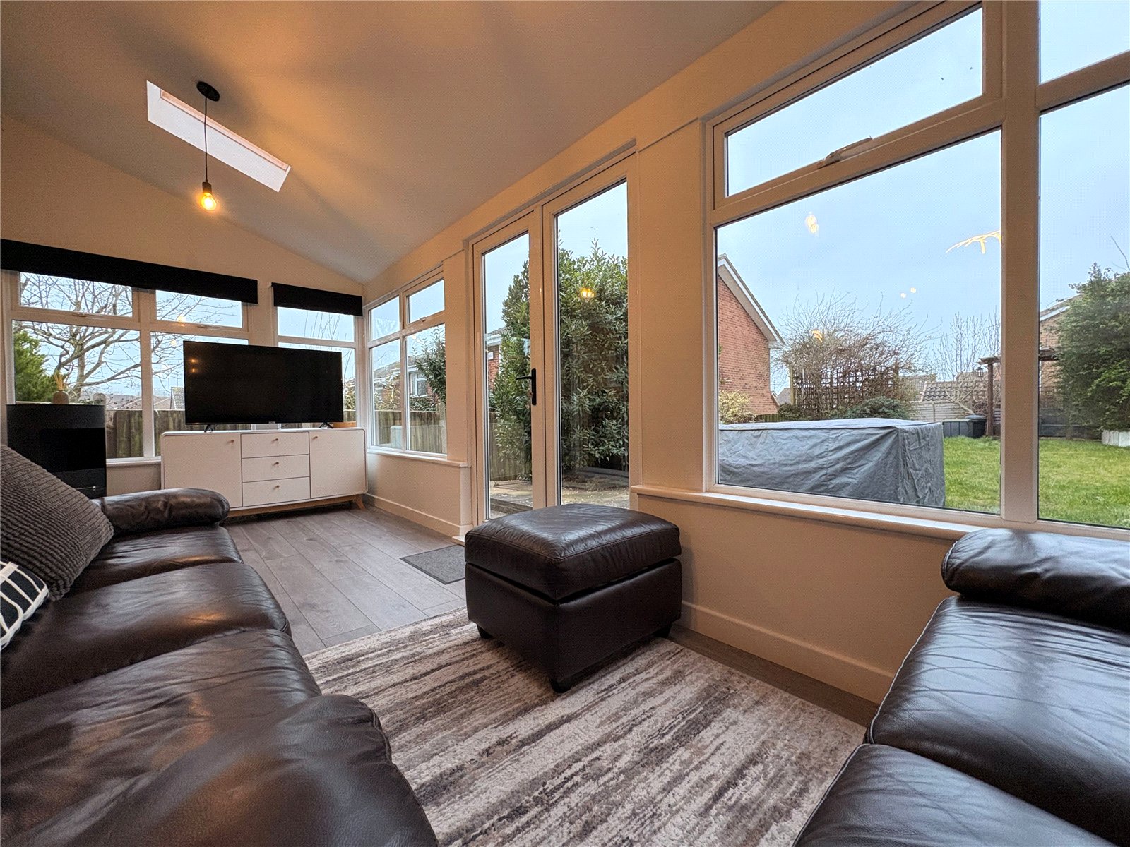 Conservatory 17'9" x 7'7" (5.4m x 2.3m). A great addition to the ground floor and of Upvc double glazed construction onto low level brick walling and with a replacement solid roof with two roof skylights. Five top opening windows and French style double opening doors to rear garden, wood effect flooring