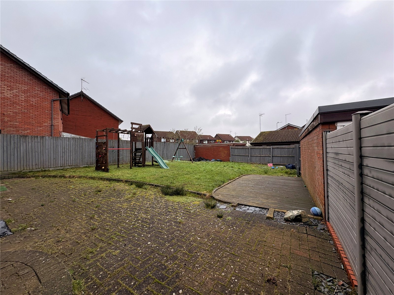 Rear A generous sized garden which has a block paved patio directly to the rear of the house leading to the main lawned area with a decked area to one side, To one of the top corners of the garden is a concrete hard standing for a garden shed. The garden is enclosed by a combination of timber panel fencing and brick walling, outside tap and outside light