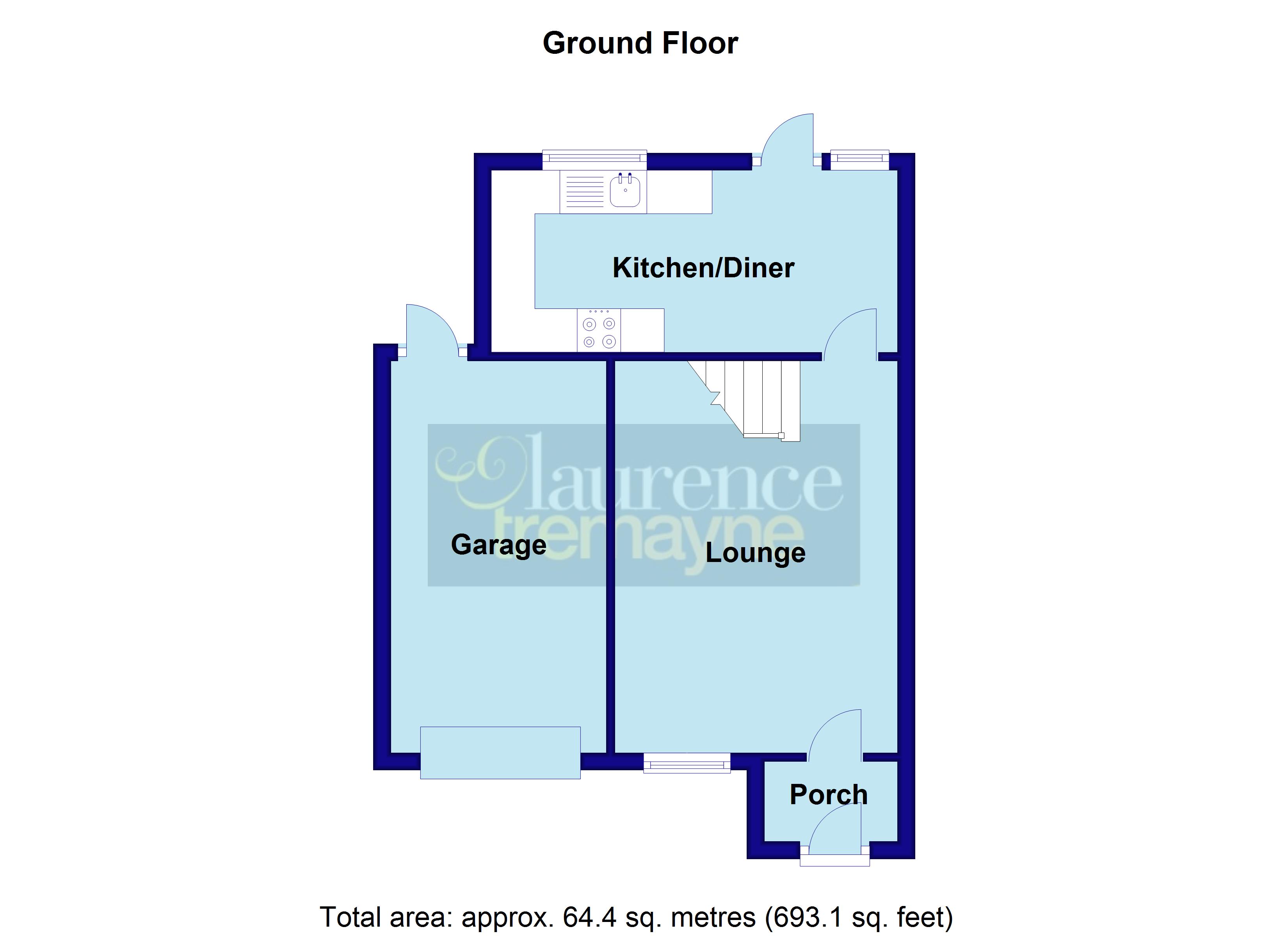Entered Via :- Part opaque Upvc double glazed door into :-
