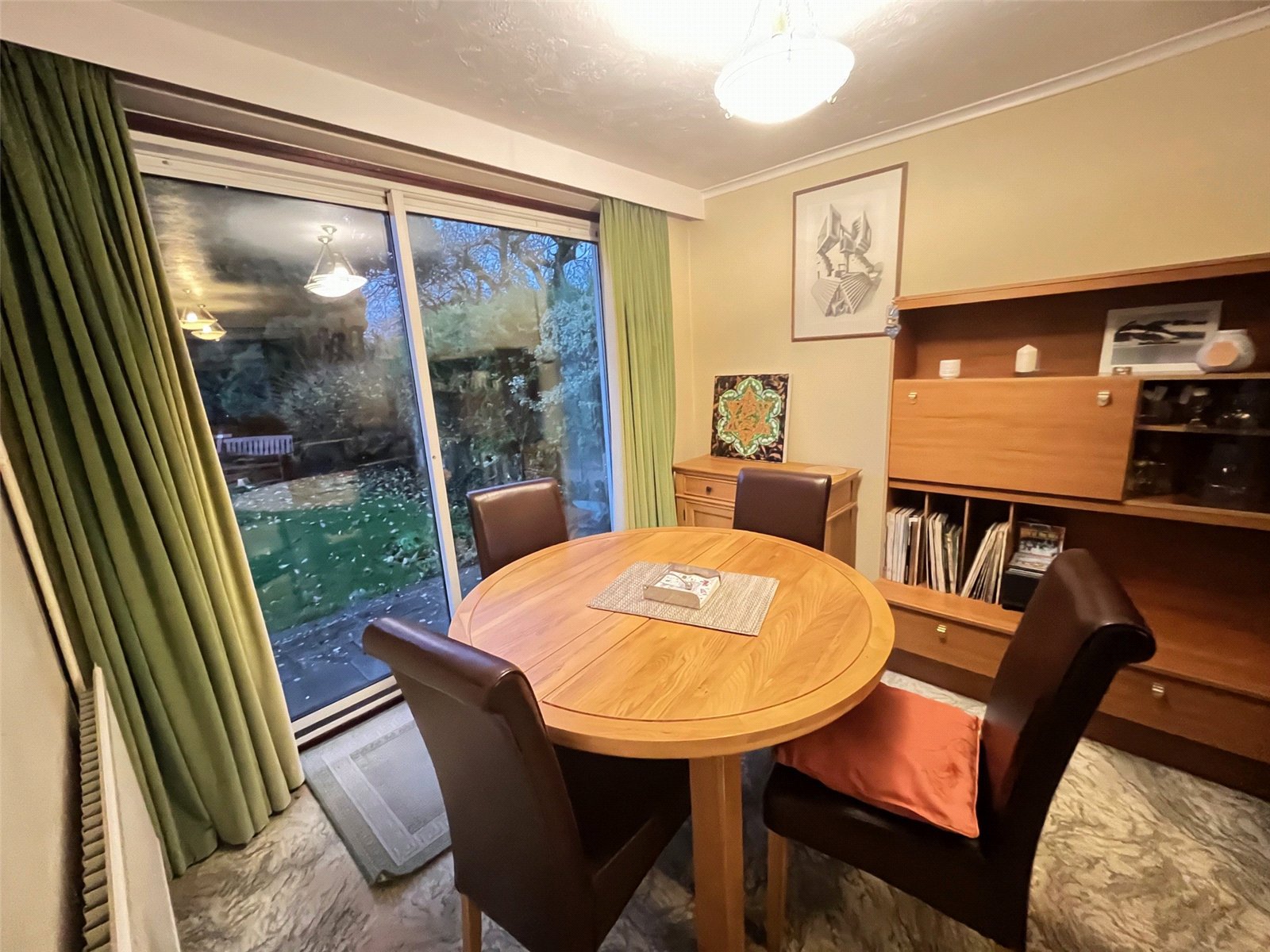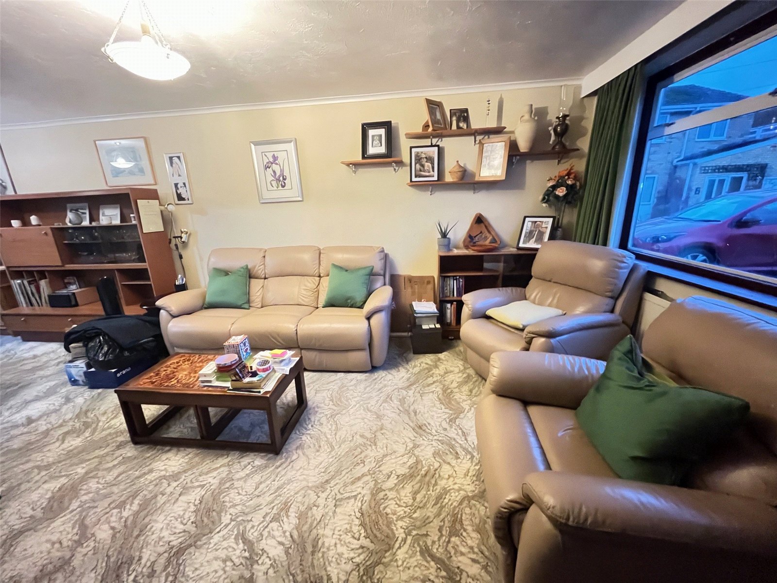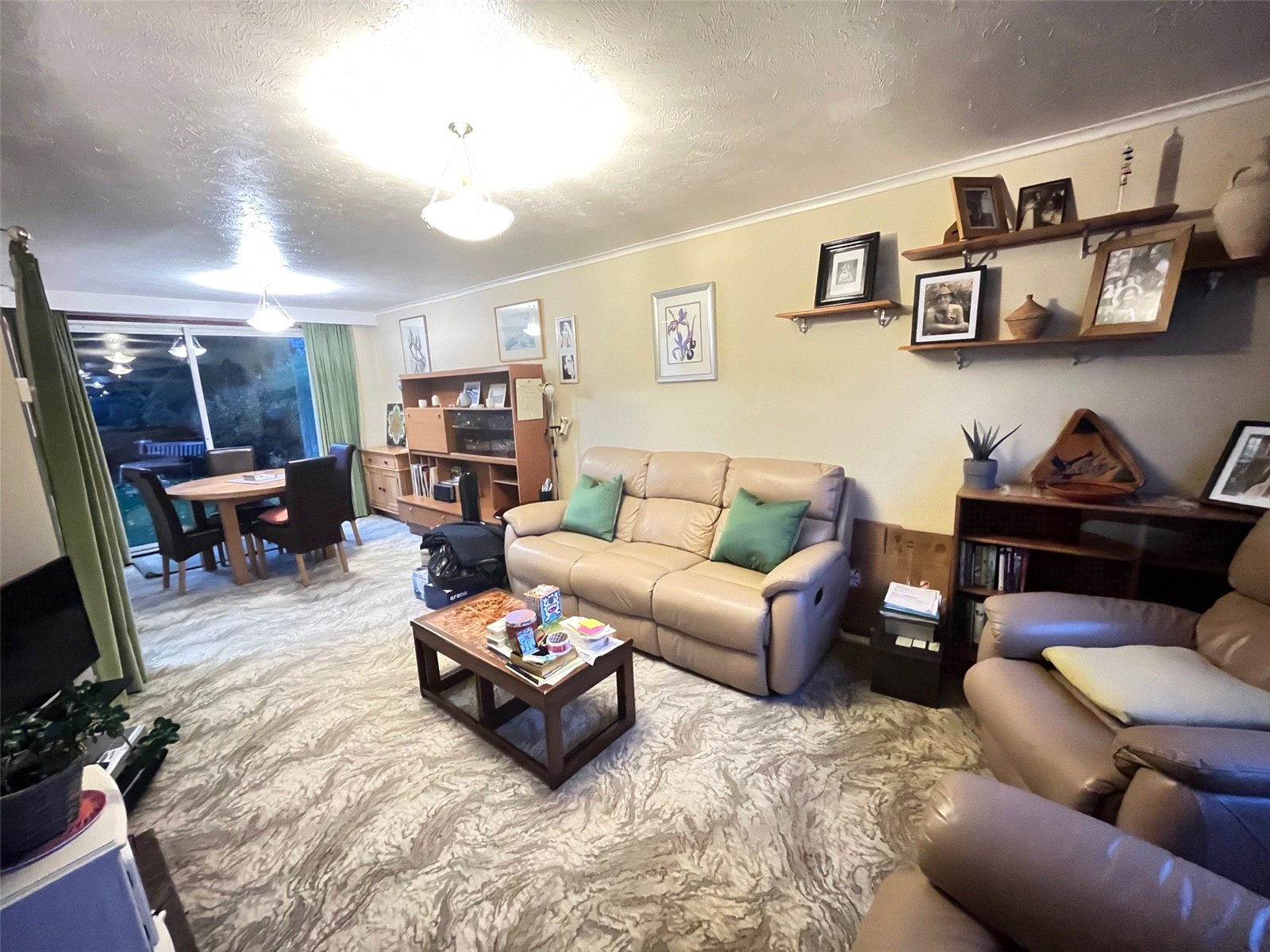 Lounge 24' x 12'8" (7.32m x 3.86m). A spacious open room with double glazed window to front aspect, double glazed patio doors to rear aspect open onto the rear garden, two radiators, feature stone fireplace, inset shelving, thermostat control panel, coving to ceiling, doorway to kitchen