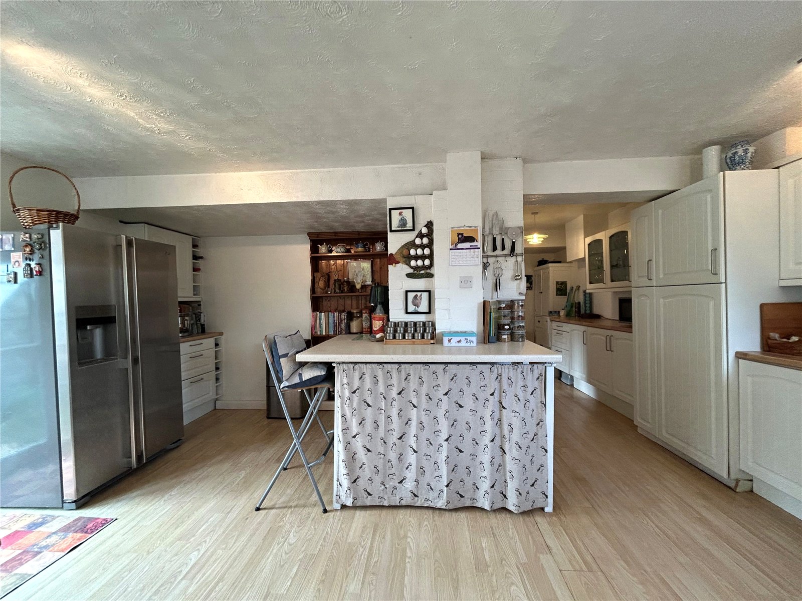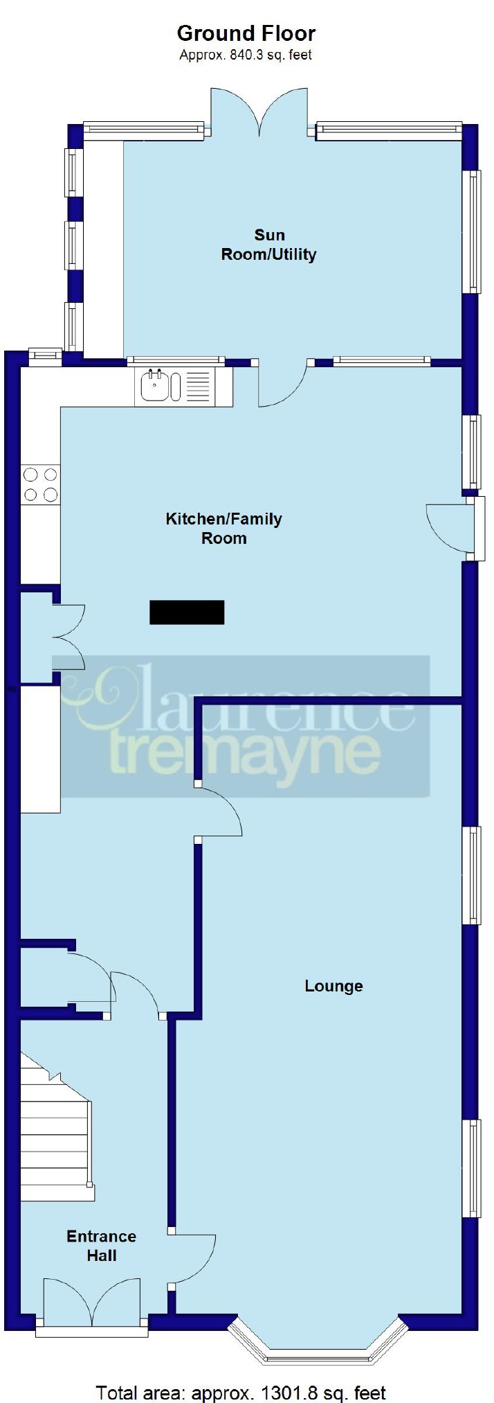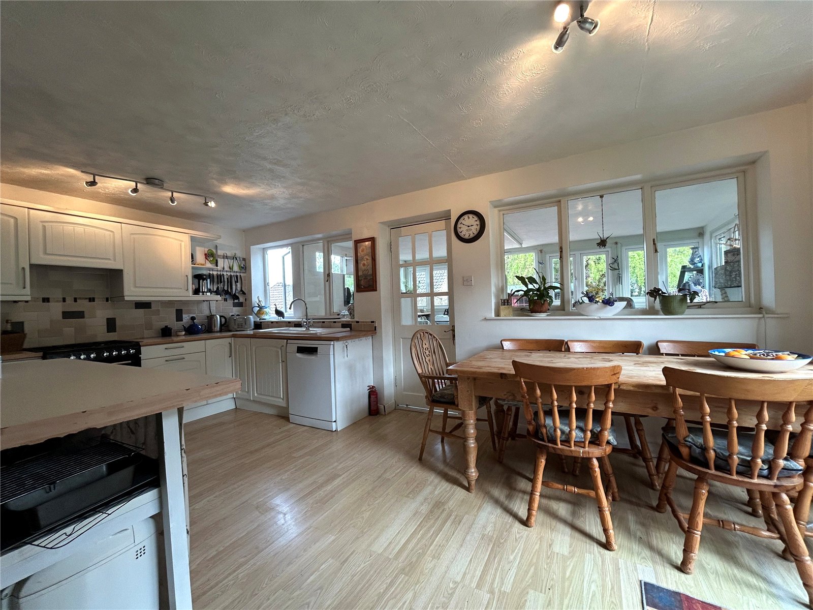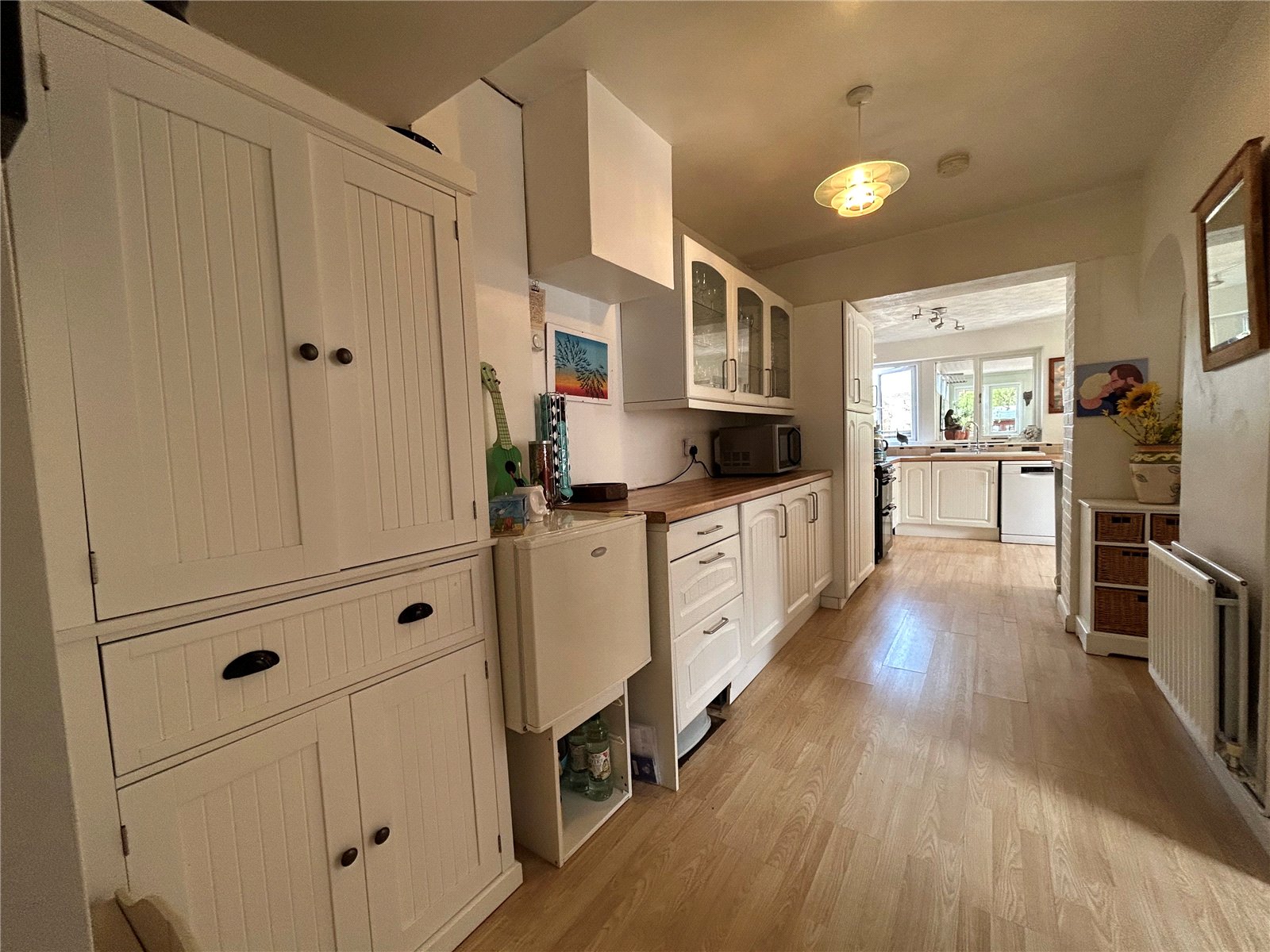 Entrance Hall 12' x 6' (3.66m x 1.83m). A good size and welcoming entrance hall with the foot of the stairs rising to the first floor landing, finished with wood laminate flooring, single panel radiator, multi-pane glazed doors through to kitchen, dining room and lounge.