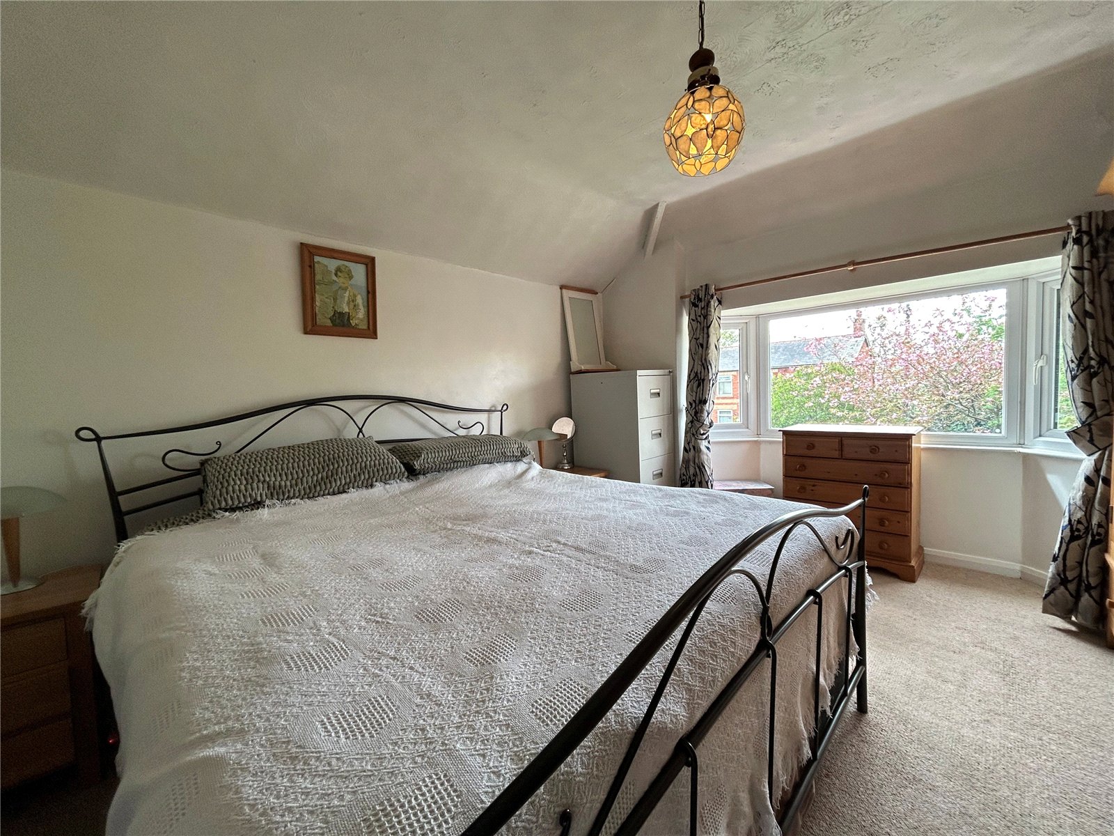 Bedroom Two 12' x 11' (3.66m x 3.35m). A good size second double bedroom with Upvc double glazed window to side aspect with a single panel radiator, shelving and hanging space to one wall.