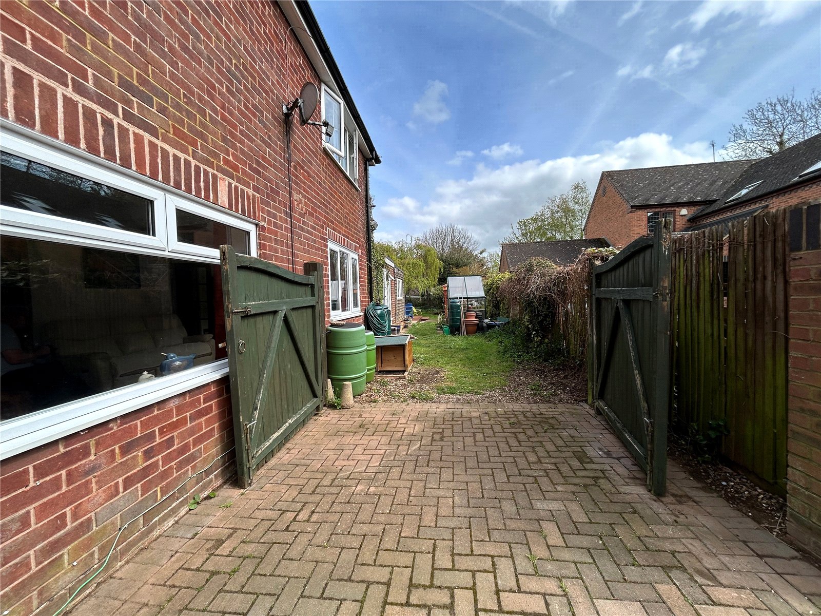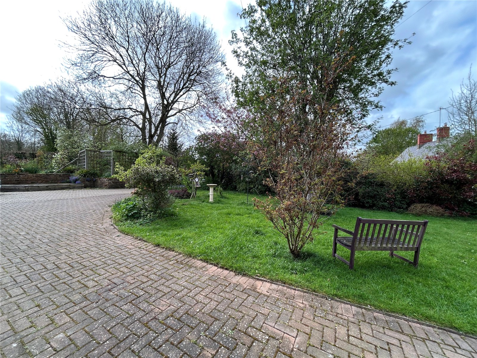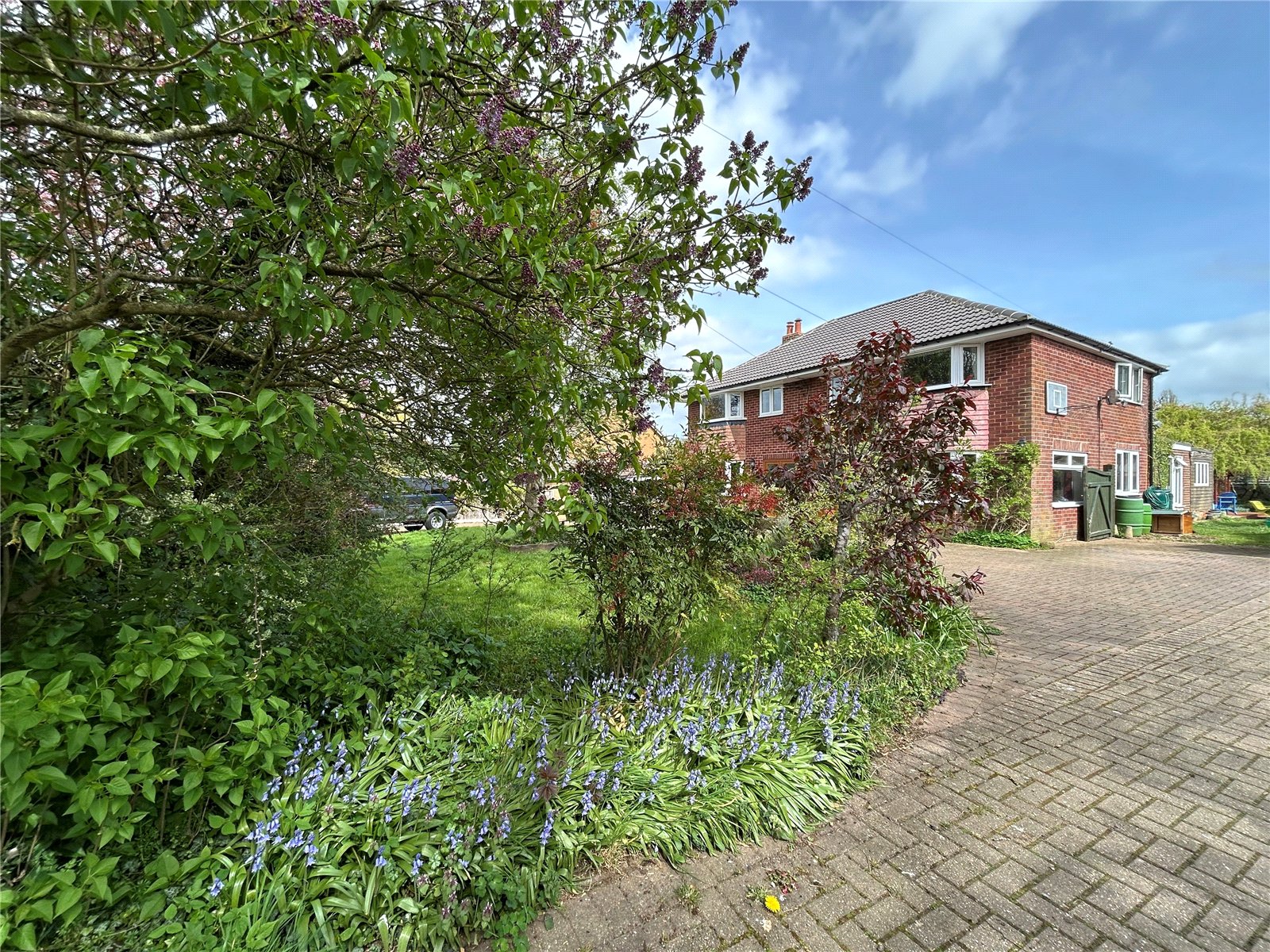 Front A block paved driveway leads to off road parking for two cars and leads to twin timber gates beyond which can offer further parking or space to store a caravan or motorhome. An attractive front garden which is laid to lawn with planted borders comprising a wide variety of plants shrubs and trees.