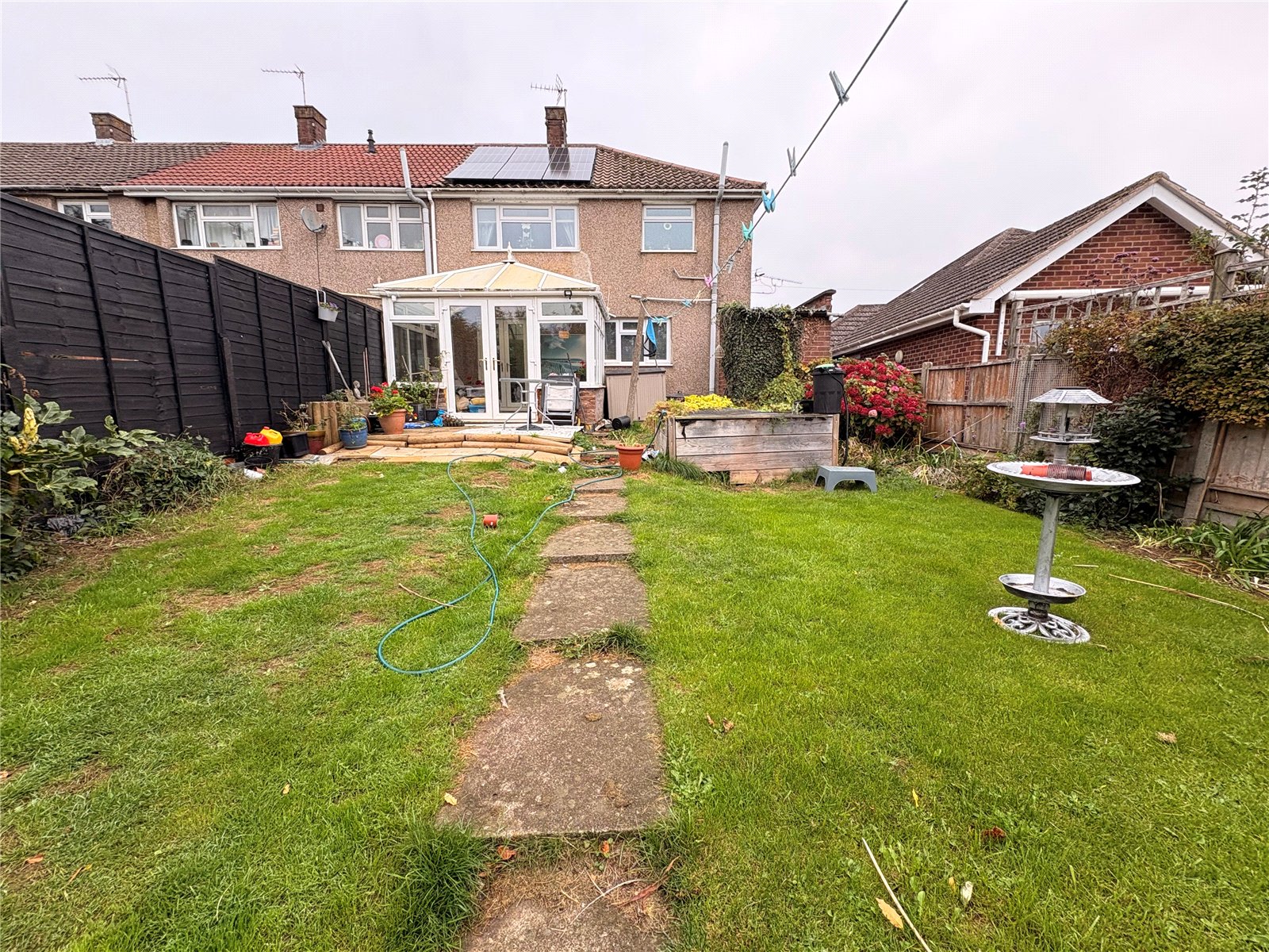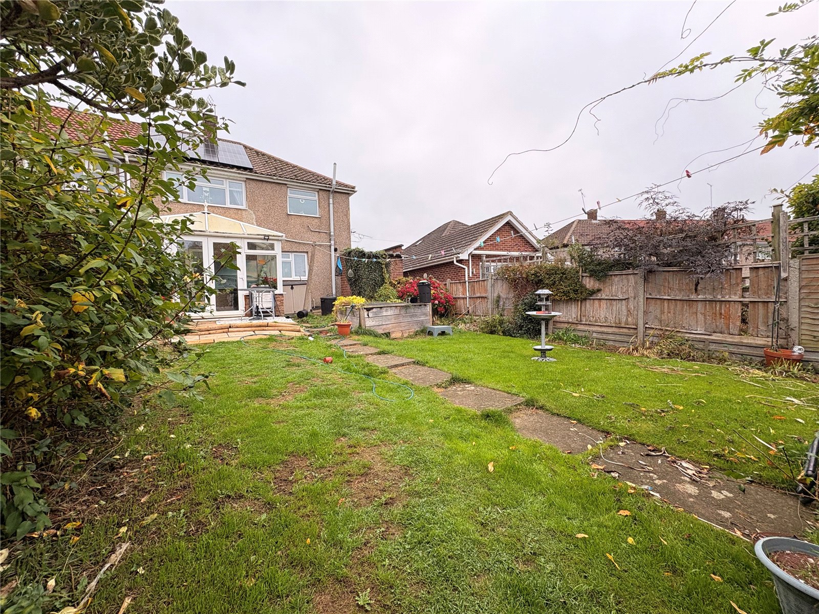 Rear    A good sized rear garden which benefits from a high degree of privacy and not being directly over looked from the rear. There is a paved patio area with the remainder being laid to lawn with a central paved pathway leading to the bottom of the garden where there are planted trees and shrubs, enclosed by timber panel fencing