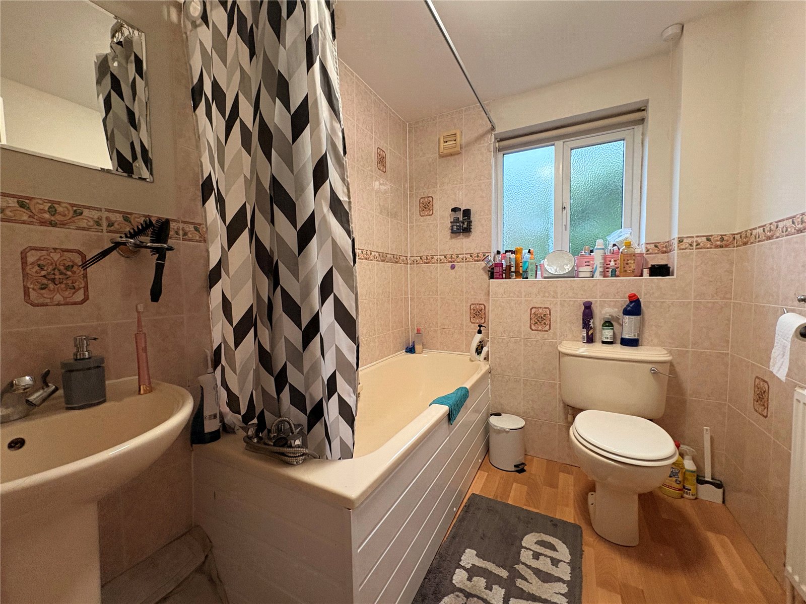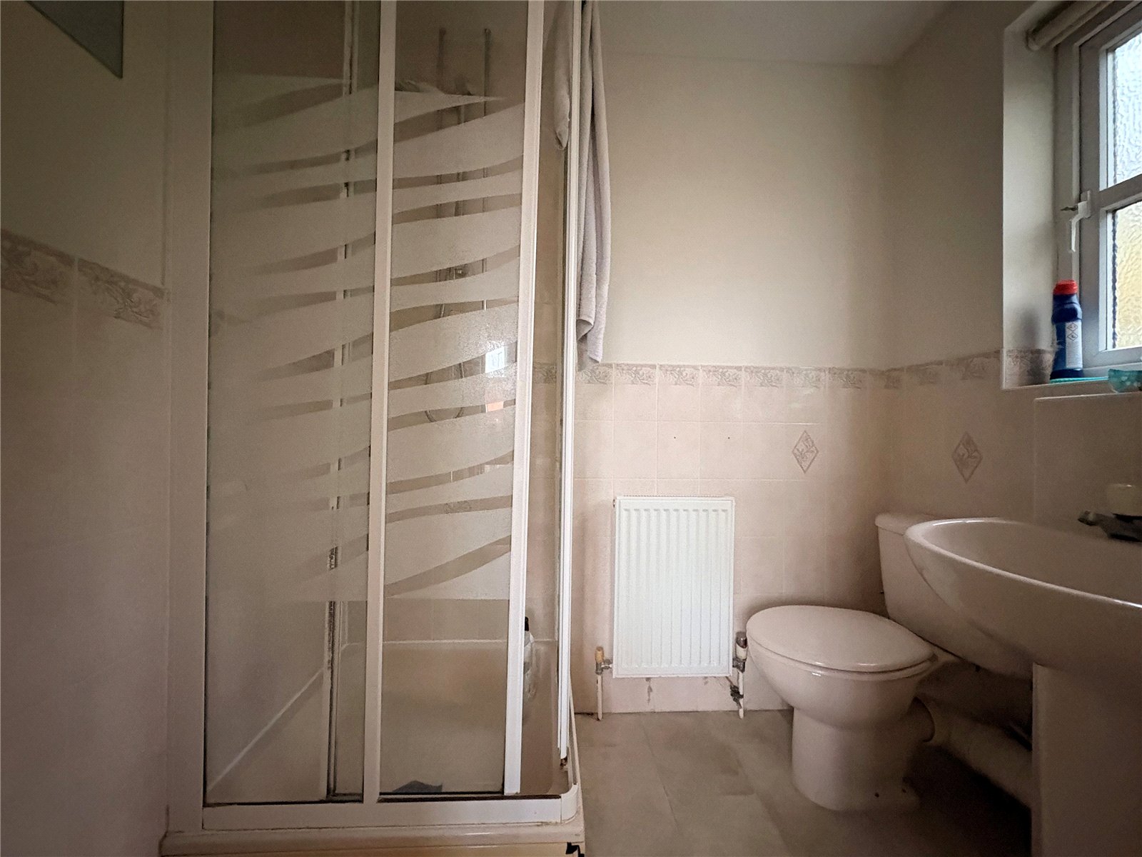 Bathroom    Fitted with a three piece suite comprising close coupled WC, panel bath with shower over and pedestal wash hand basin, tiling to bath surround and splash back areas, frosted Upvc double glazed window to rear aspect, single panel radiator.