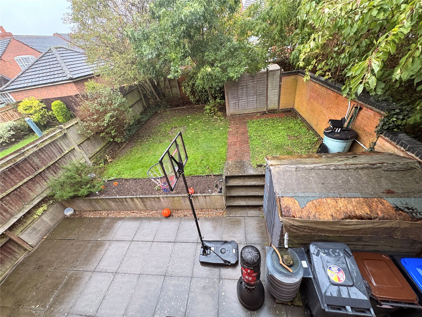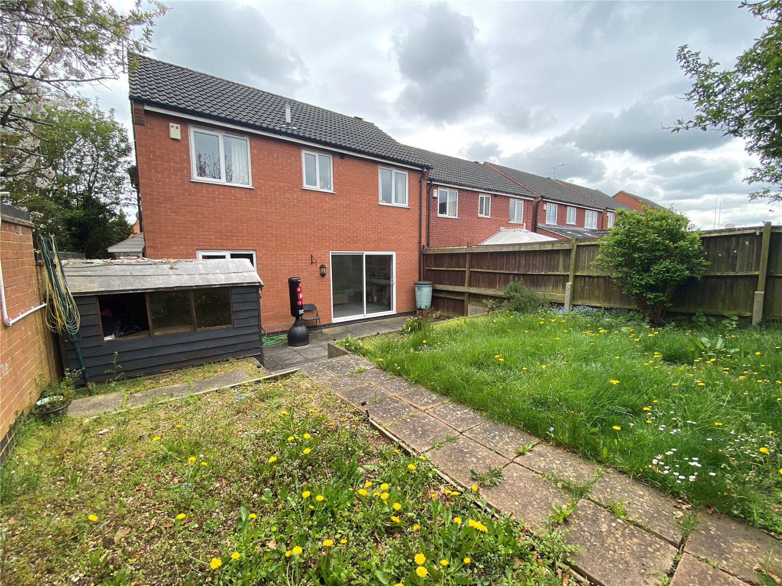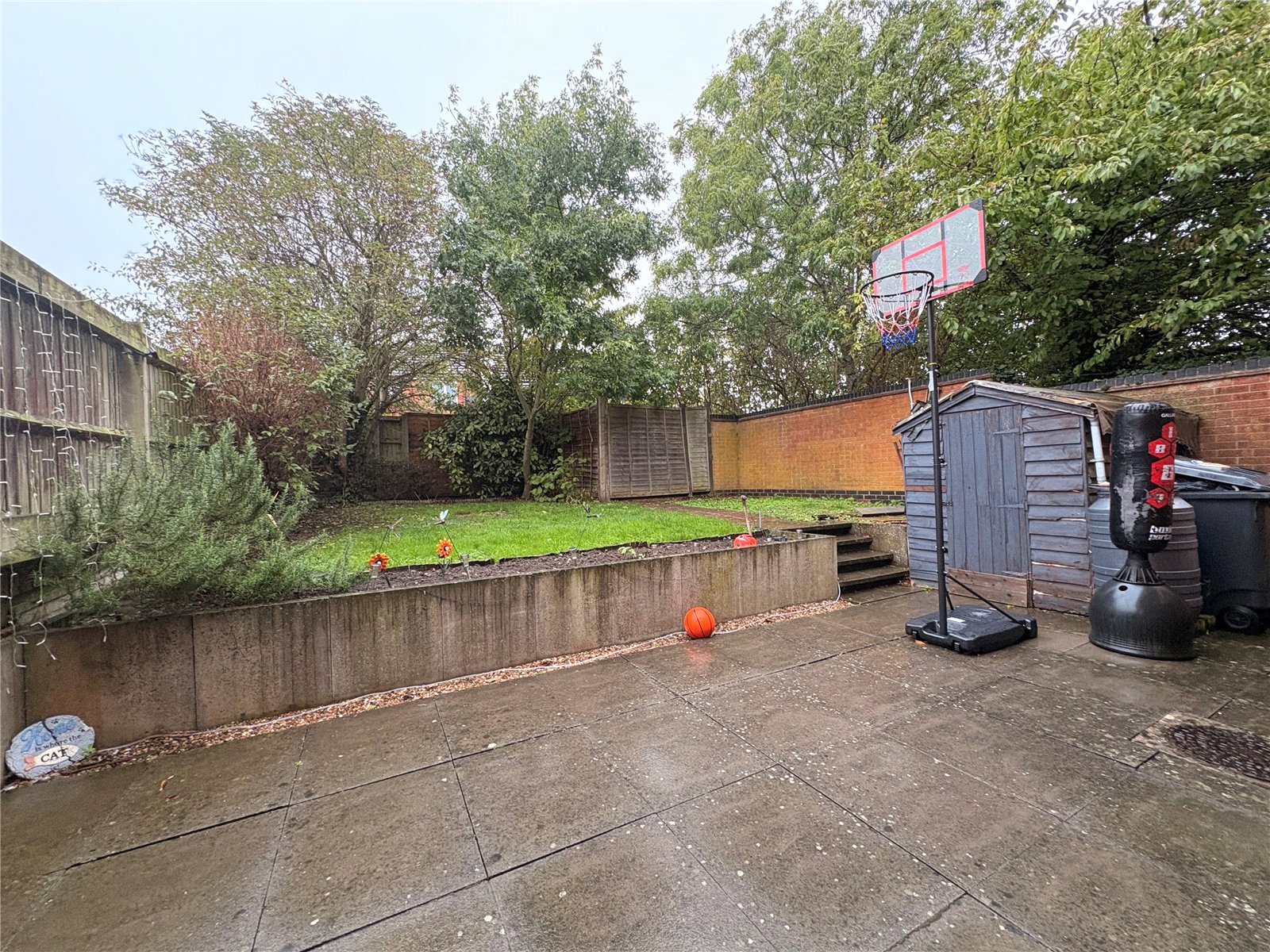 Rear    The property has a paved patio area directly to the rear of the house, from here is the main lawned area with paved pathway and hardstanding for garden shed, enclosed to sides by timber panel fencing