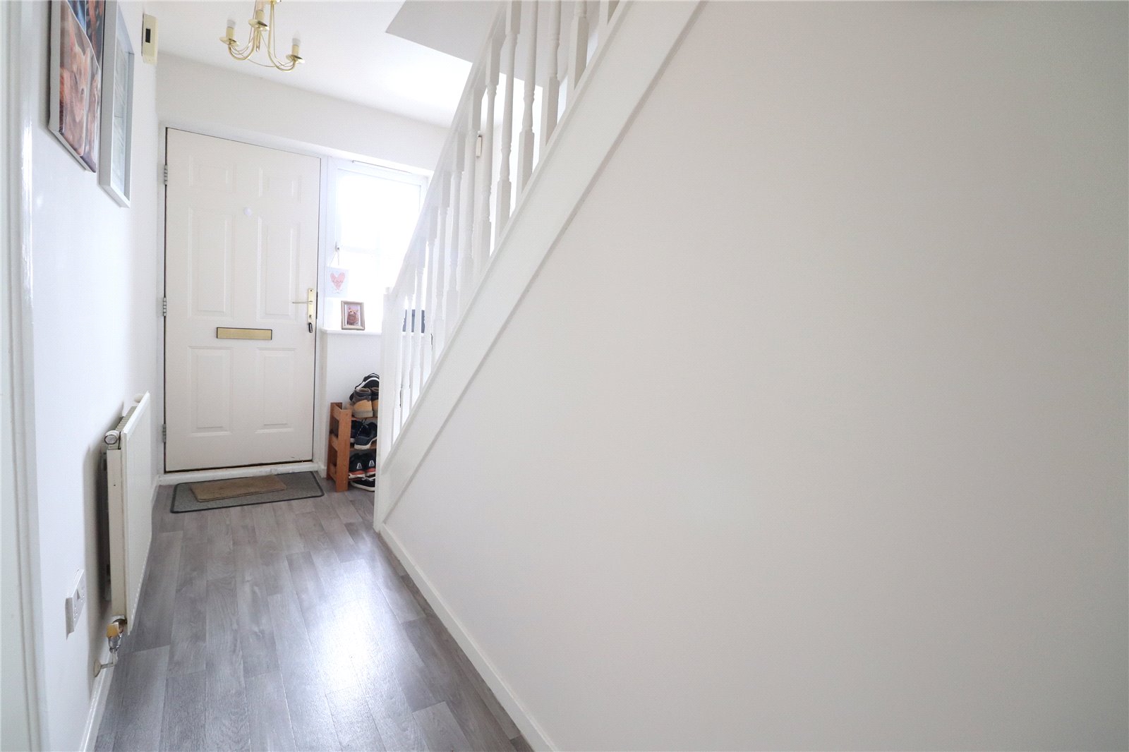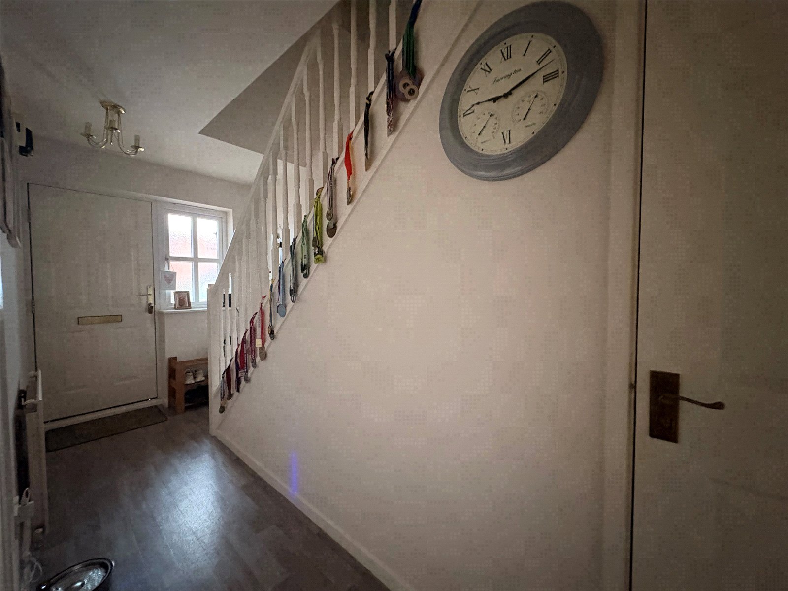 Entrance Hallway    Stairs rising to first floor landing, hanging space for coats, single panel radiator, white panel doors to ground floor accommodation
