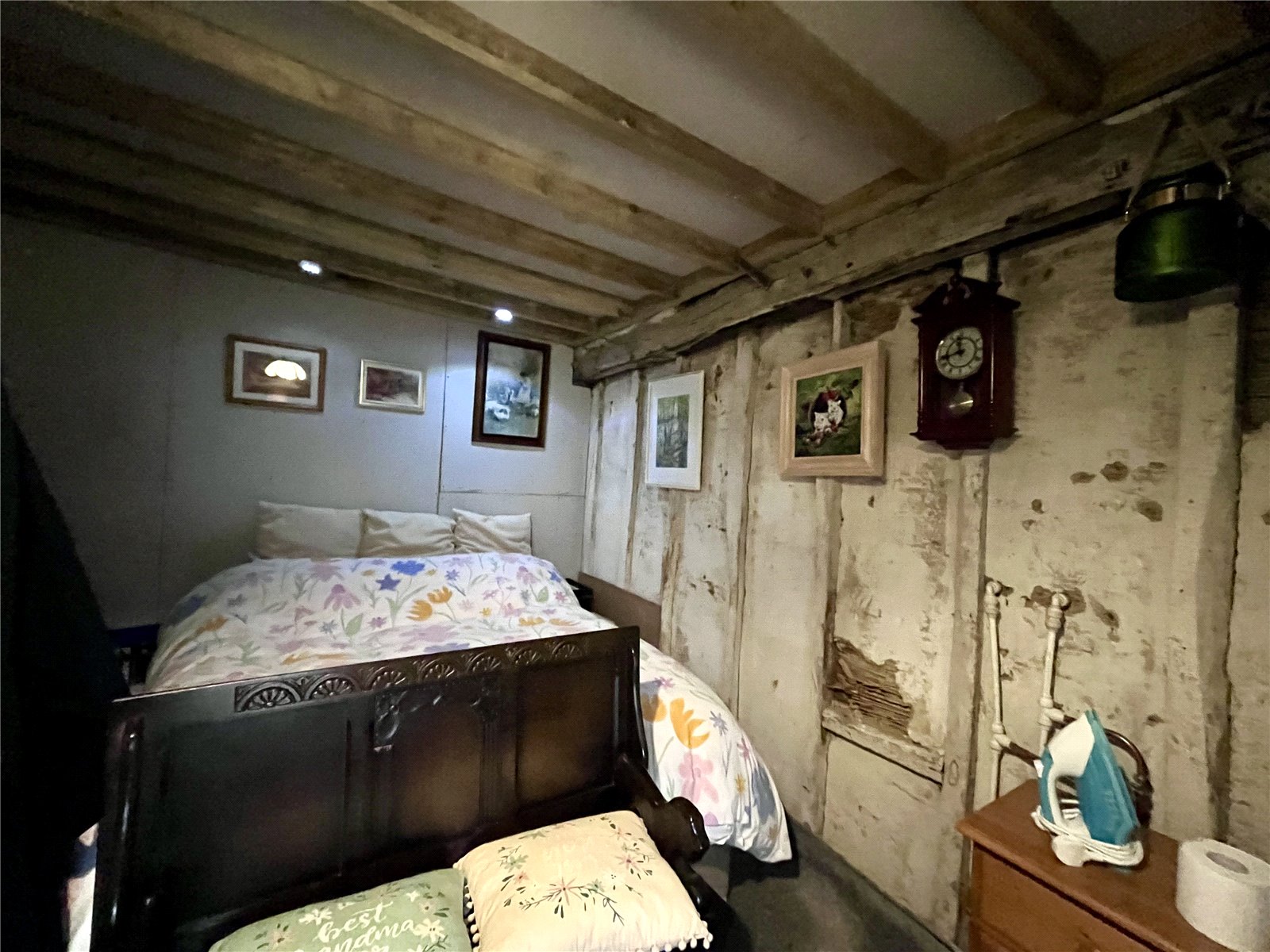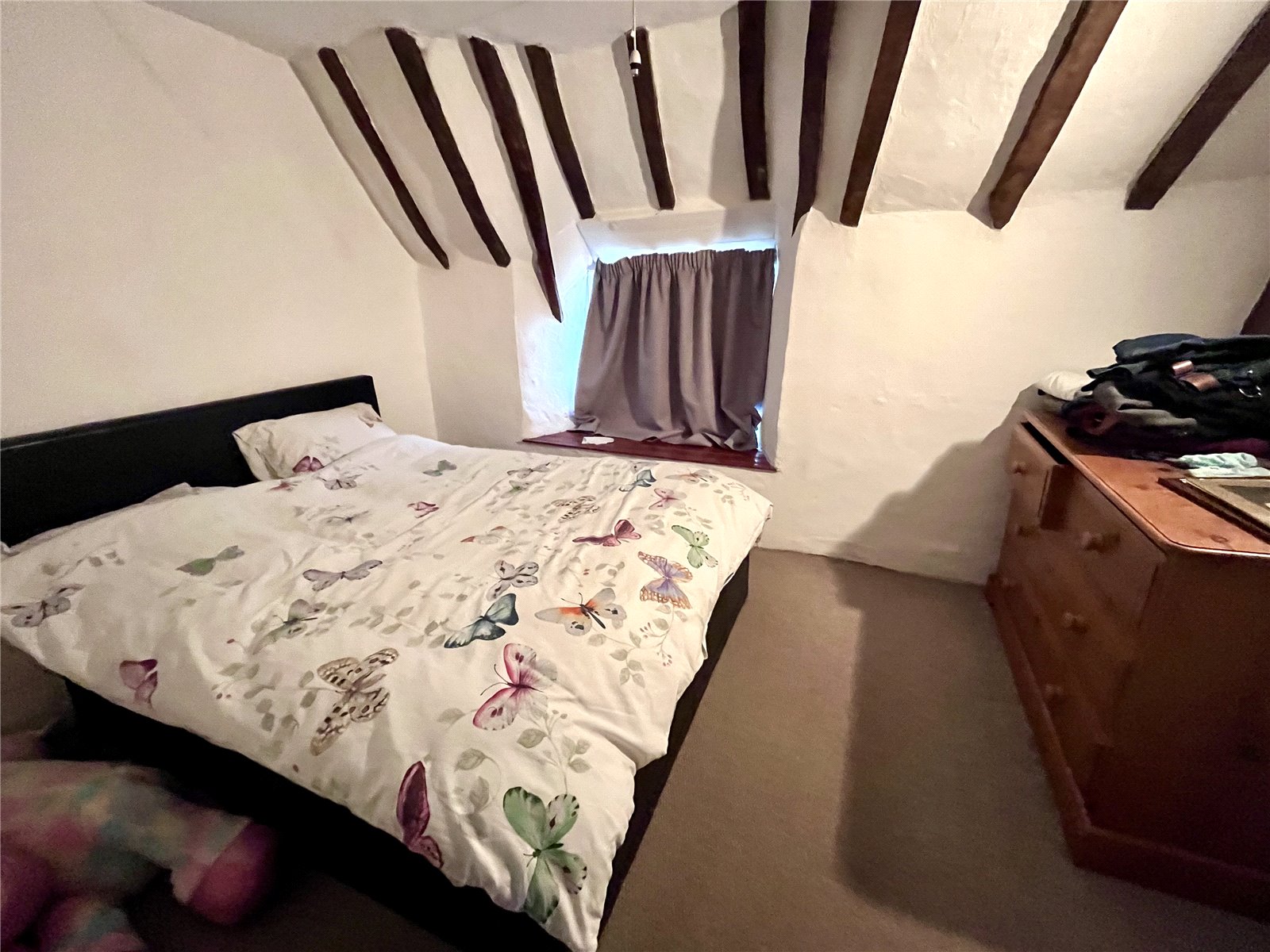 Bedroom One 11'4" x 8' (3.45m x 2.44m). Georgian pane window to front aspect with deep sill under, exposed beams, built in wardrobe to one wall.