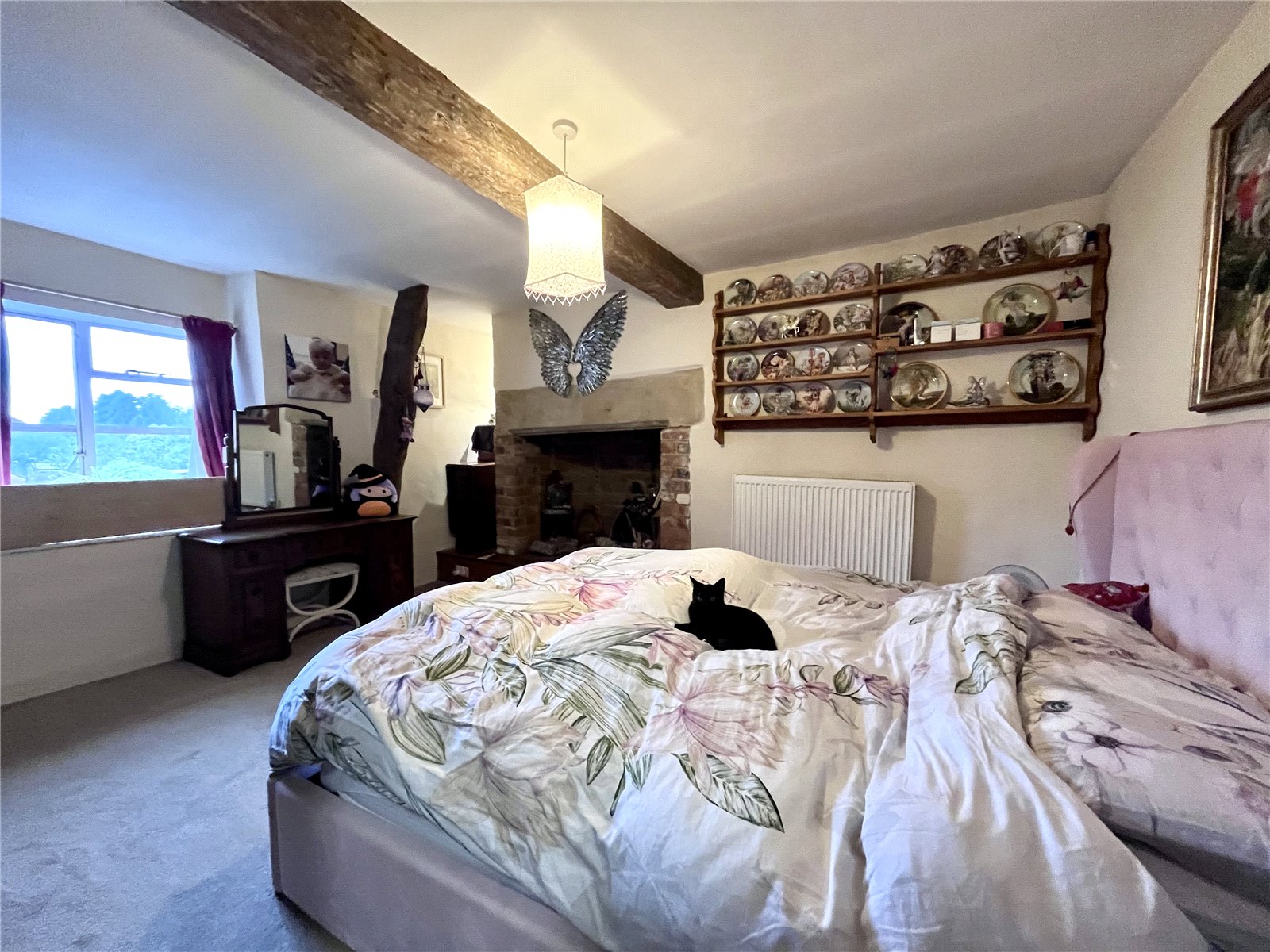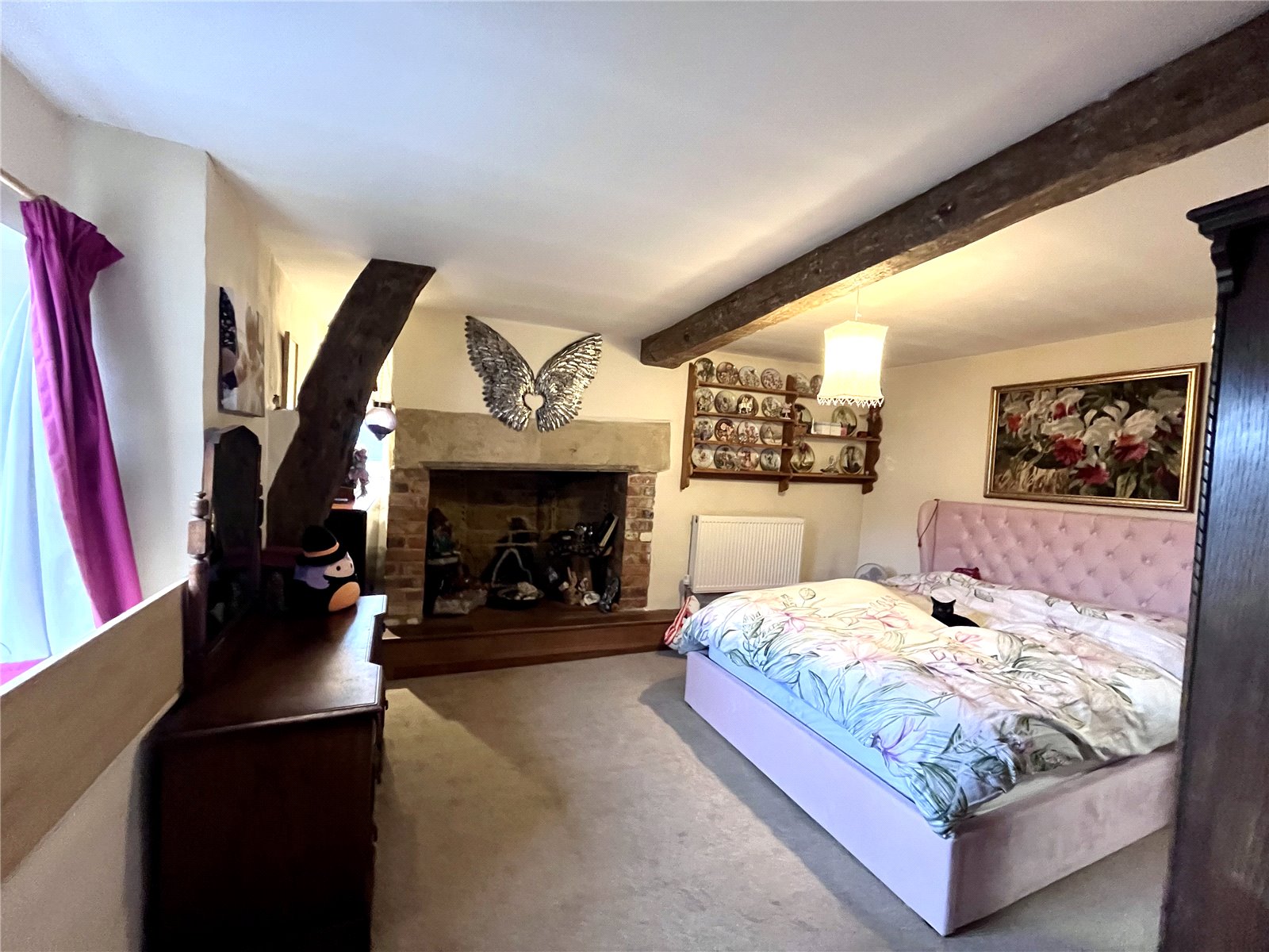 Bedroom One 15'4" x 14'9" (4.67m x 4.5m). The main focal point of this lovely bedroom is the ornamental feature fireplace with brick pillars, stone beam over and wooden hearth. Window to rear aspect with deep sill, further window to side aspect, double panel radiator, exposed beam to ceiling and further door to