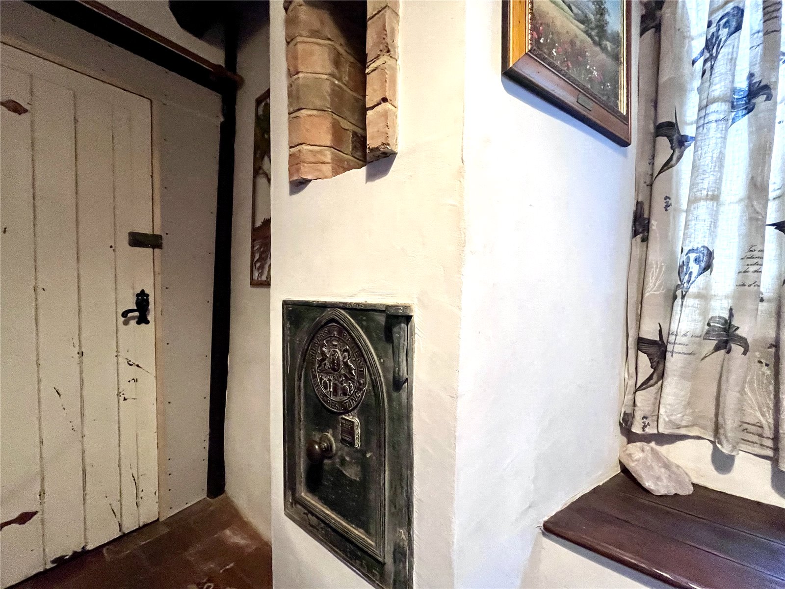 Inner Hallway Doors to balance of ground floor accommodation and further door to original stone stairs that rise to first floor accommodation, Inset safe, continuation of quarry tiled floor, window to rear aspect with window seat under, smoke alarm, exposed beams.