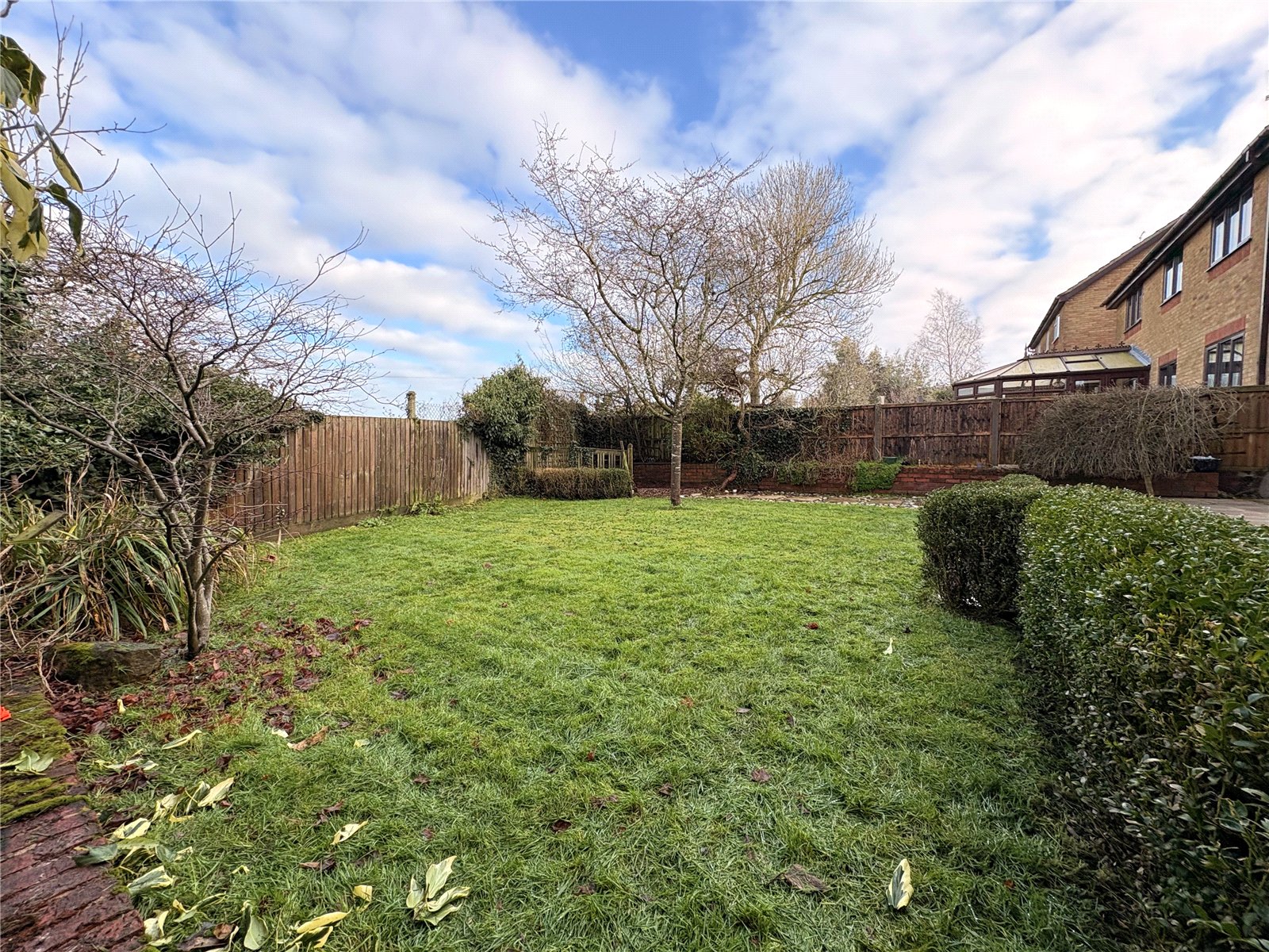 Front The front of the property is laid to lawn with a block paved pathway leading to the front door with planted shurbs and bushes to one side