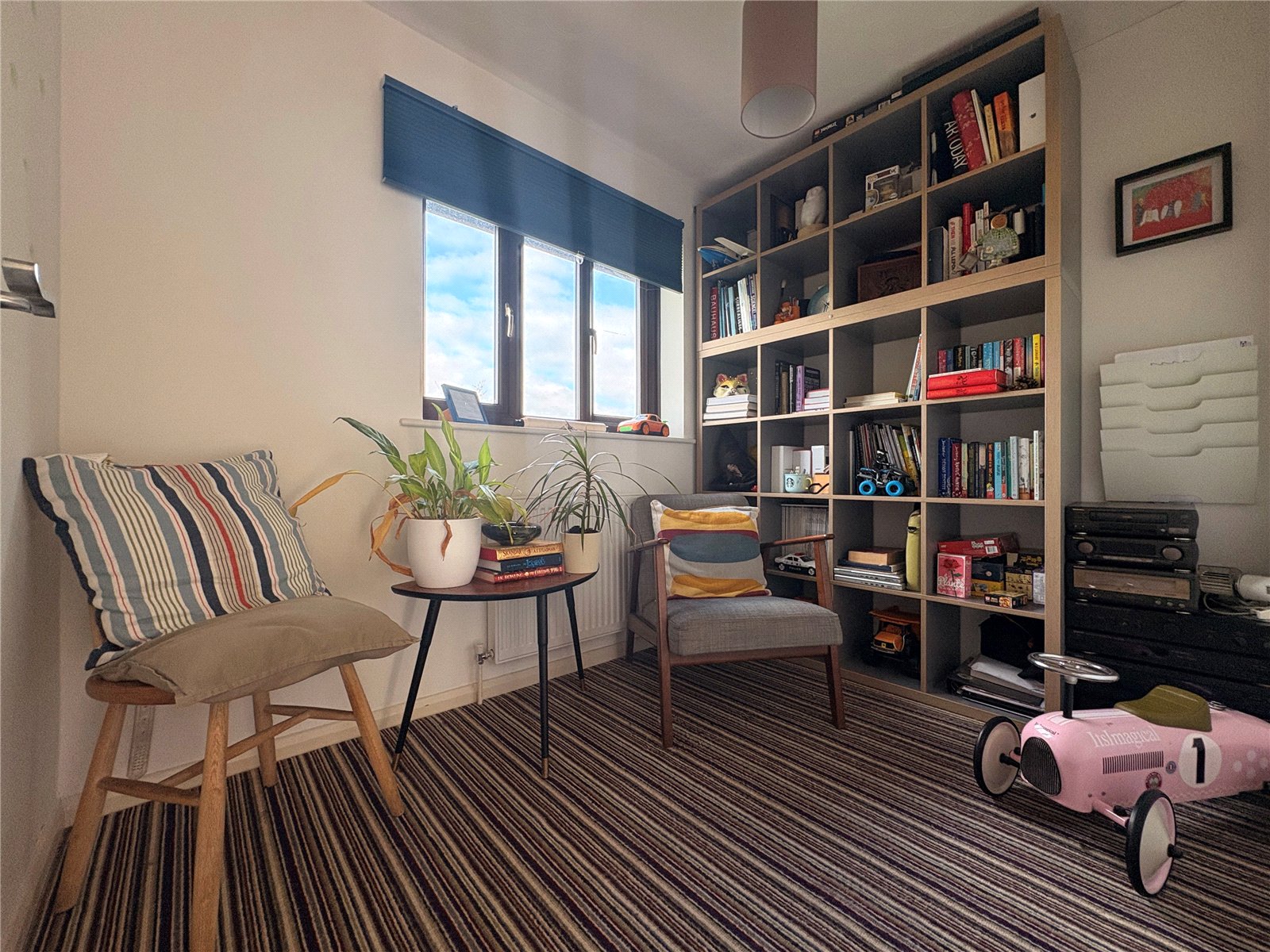Bedroom Four 8'6" x 6' (2.6m x 1.83m). Used as a reading room/ home office and with a built in cupboard with slatted shelving, Upvc double glazed window to rear aspect offering far reaching views over open countryside with single panel radiator under