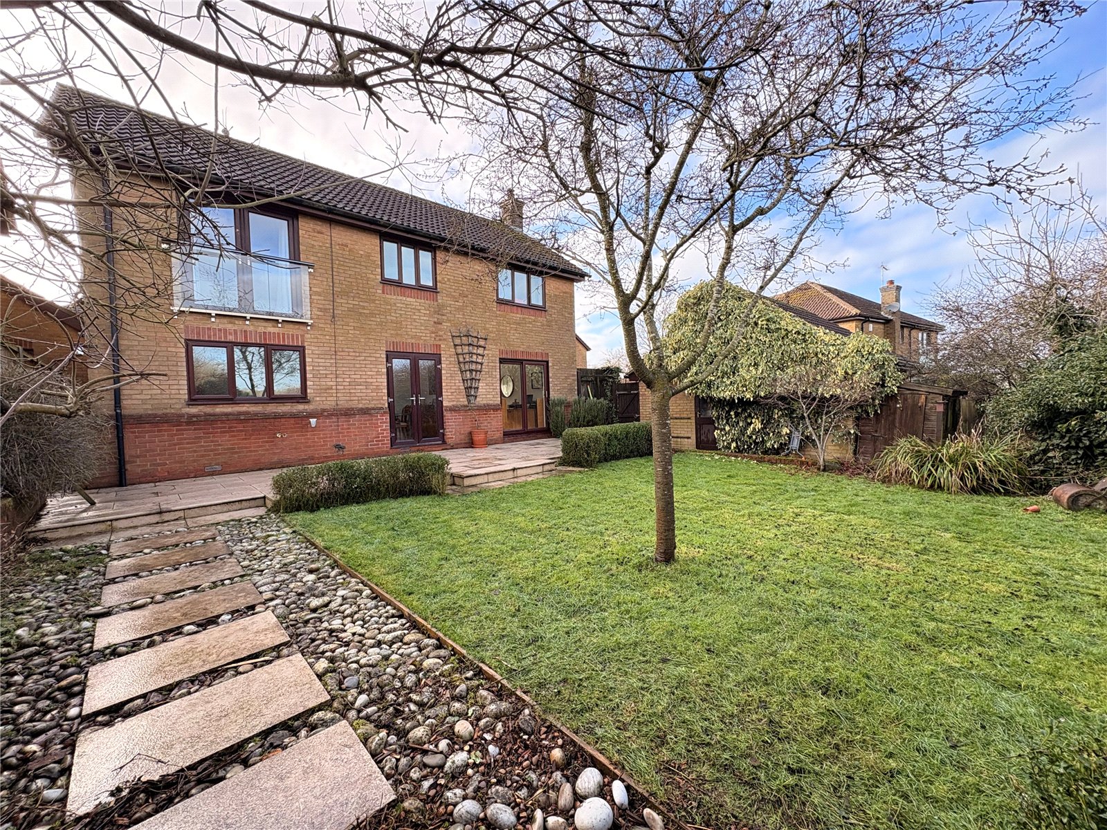 Positioned at the end of a cul-de-sac in the HIGHLY DESIRABLE Village of LONG BUCKBY is this WELL PRESENTED detached family home. With accommodation comprising open plan reception, RE-FITTED CLOAKROOM, 20'5" KITCHEN DINER, DUAL ASPECT LOUNGE, FOUR BEDROOMS all with fitted storage, ENSUITE to bedroom one with JULIETTE BALCONY and a family bathroom. Outside is a pleasant rear garden, front garden, DETACHED DOUBLE GARAGE and BLOCK PAVED DRIVEWAY providing off road parking for several vehicles. The property further benefits from Upvc double glazing, gas to radiator heating and offer FAR REACHING COUNTRYSIDE VIEWS. EPC - C