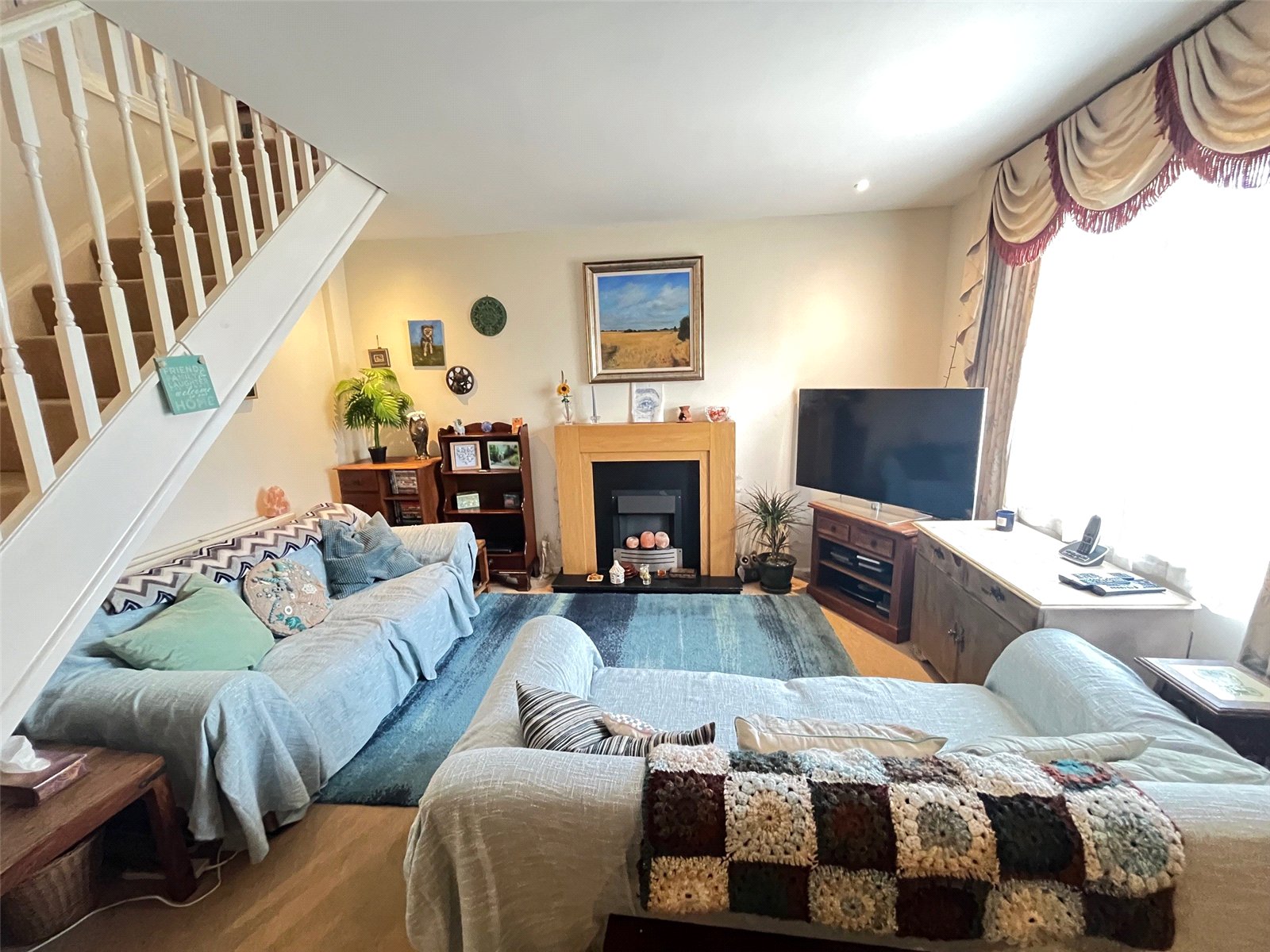 Lounge 14'6" x 13' (4.42m x 3.96m). A delightful room with the focal point being a feature fireplace with wooden surround with inset electric fire, recessed lighting, stairs rising to first floor landing, radiator, television point, Upvc double glazed window to front aspect, wooden door to :-
