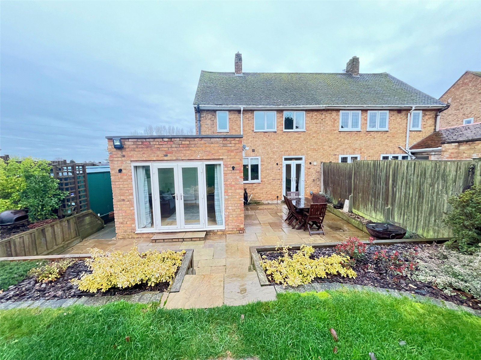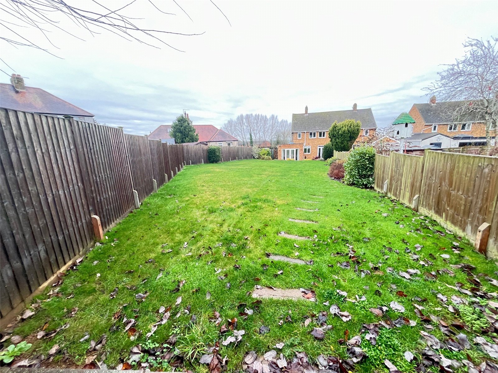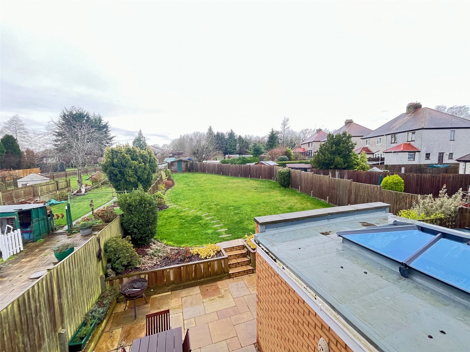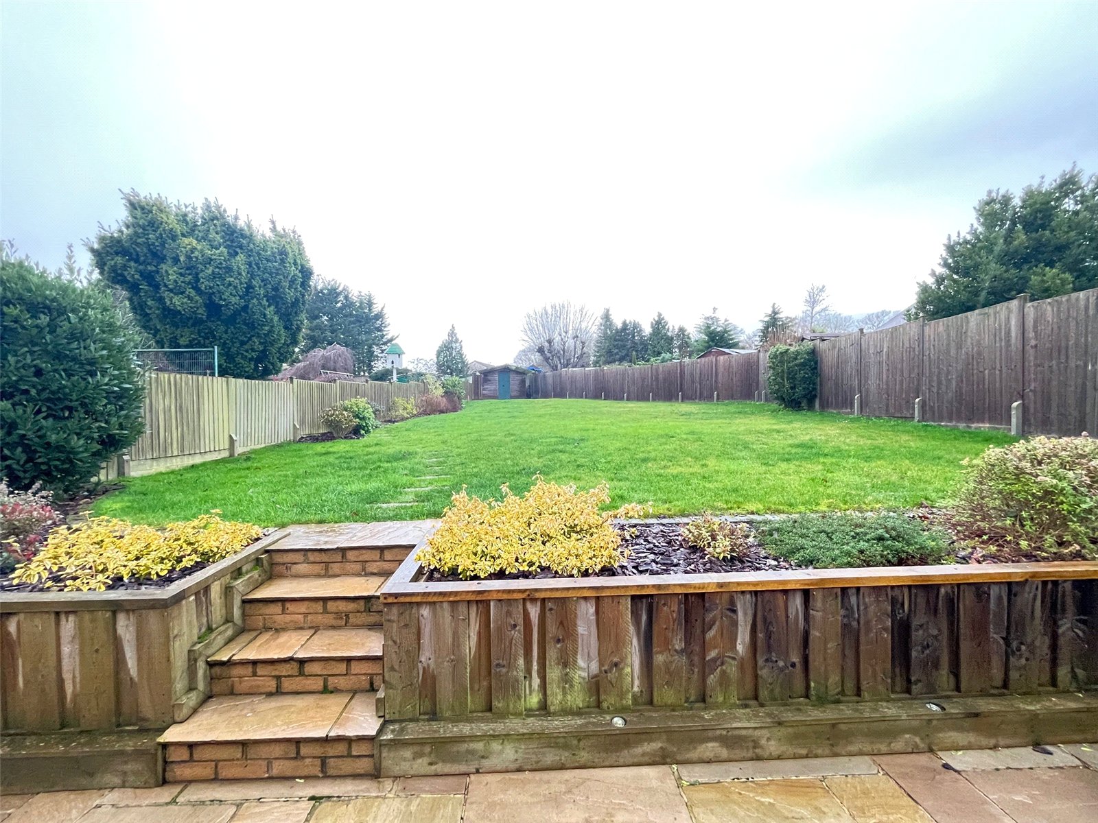 Rear A westerly facing landscaped rear garden that benefits from not being overlooked, paved patio area with outside light, outside light and external power point. The patio runs across the rear of the property with steps leading up to lawn area, a further pathway to side storage area with hardstanding for oil tank and shed , further outside tap and lights, double wood gated access to front. Large lawn area with shrubs and flower borders, at the bottom of the garden is a hardstanding area for wooden shed, enclosed by timber fencing