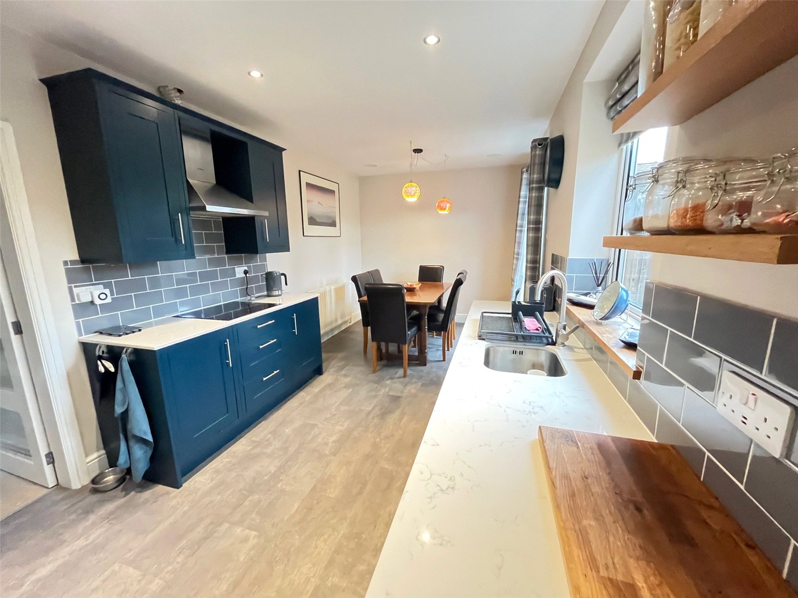 Kitchen/Diner 19'10" x 9' (6.05m x 2.74m). A beautiful refitted kitchen/diner fitted with a range of eye and base level units with granite work surfaces over, inset 'AEG' double electric oven and microwave, 'AEG' induction hob with extractor hood over, stainless steel sink and drainer unit with swan neck mixer tap over, tiling to water sensitive areas, recessed lighting, radiator, Upvc double glazed window to rear aspect with views over the rear garden, Upvc double glazed French doors opening onto the patio of the rear garden, wooden door to utility, open to snug/reception room