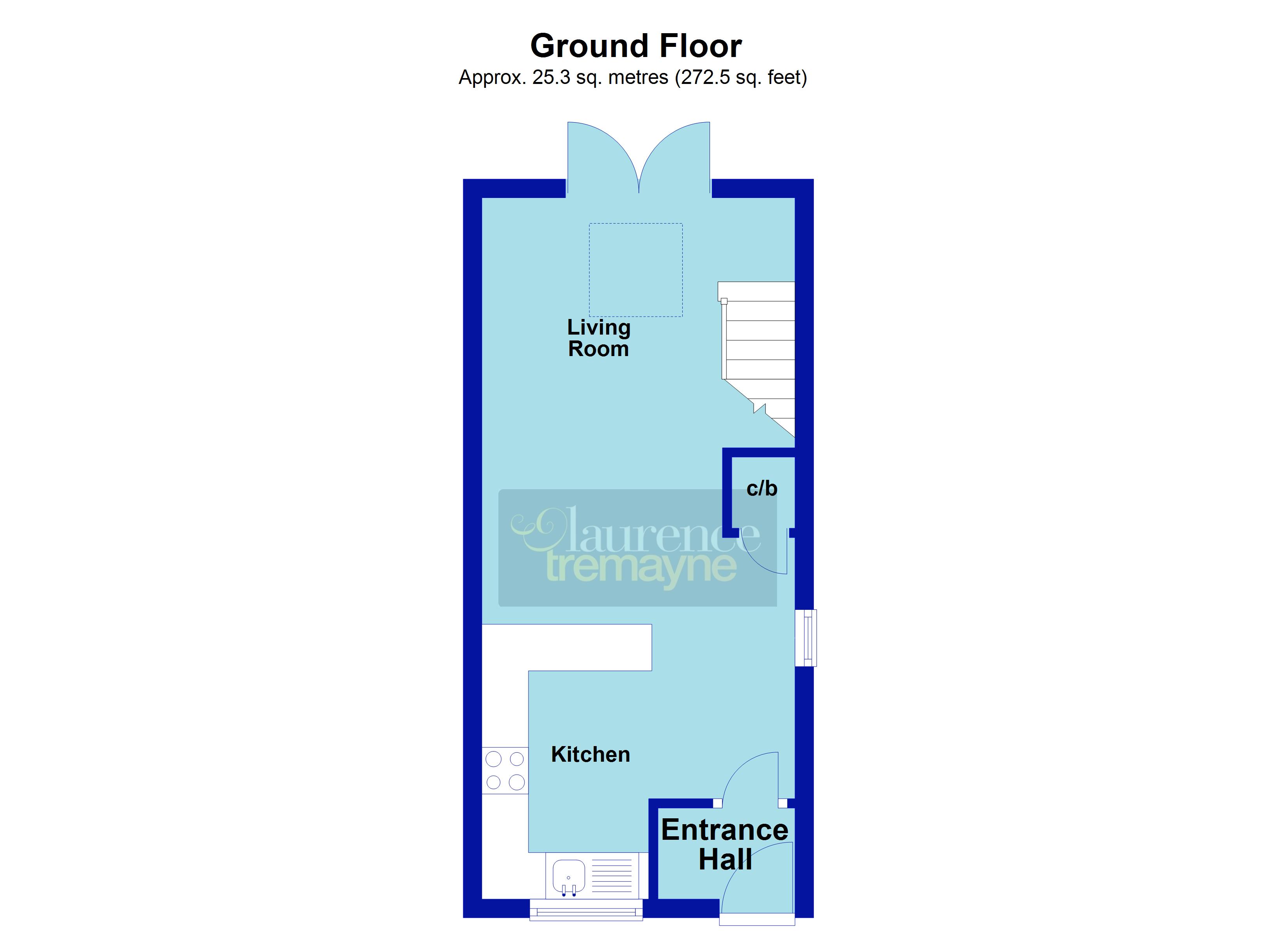 Entrance Hall 5'2" x 3'6" (1.57m x 1.07m). A small entrance hall with hanging space for coats, wood effect laminate flooring, wooden door to:-