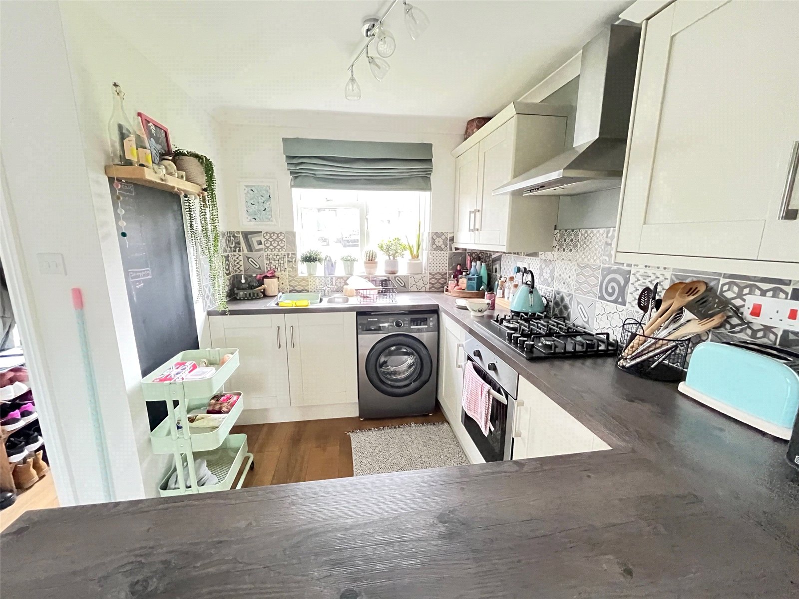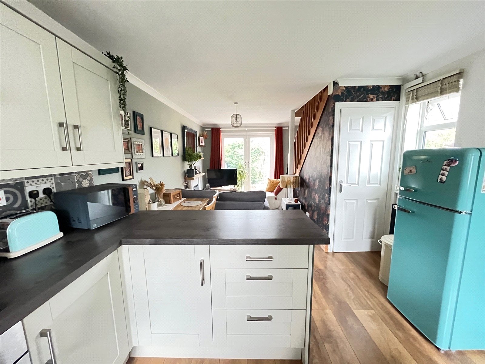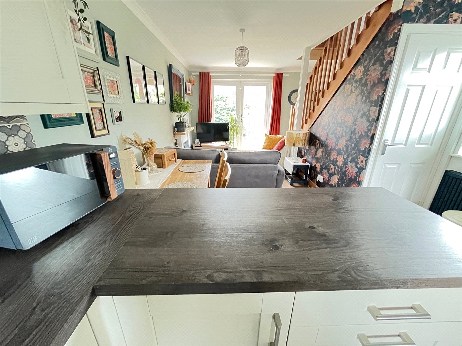 Open Plan Living/Kitchen 24'6" x 11' max (7.47m x 3.35m max). A bright and spacious open plan living area with the kitchen area being fitted with a range of both eye and base level units with worksurfaces over and under unit lighting, inset electric oven, gas hob with extractor fan over, inset one and a quarter bowl single drainer stainless steel sink unit with mixer tap over, space and plumbing for washing machine, space for firdge/freezerdrawer stack, coved ceiling, tiling to water sensitive areas, Upvc double glazed window to front aspect, wall mounted vertical radiator, further radiator, Upvc double glazed window to side aspect, opening into the living area with under stairs storage cupboard, wood laminate flooring, dining area, stairs rising to first floor landing, coved ceiling, television point, feature fireplace with wooden surround tiled base with inset electric fire, Upvc double glazed French doors opening onto the patio of the rear garden.