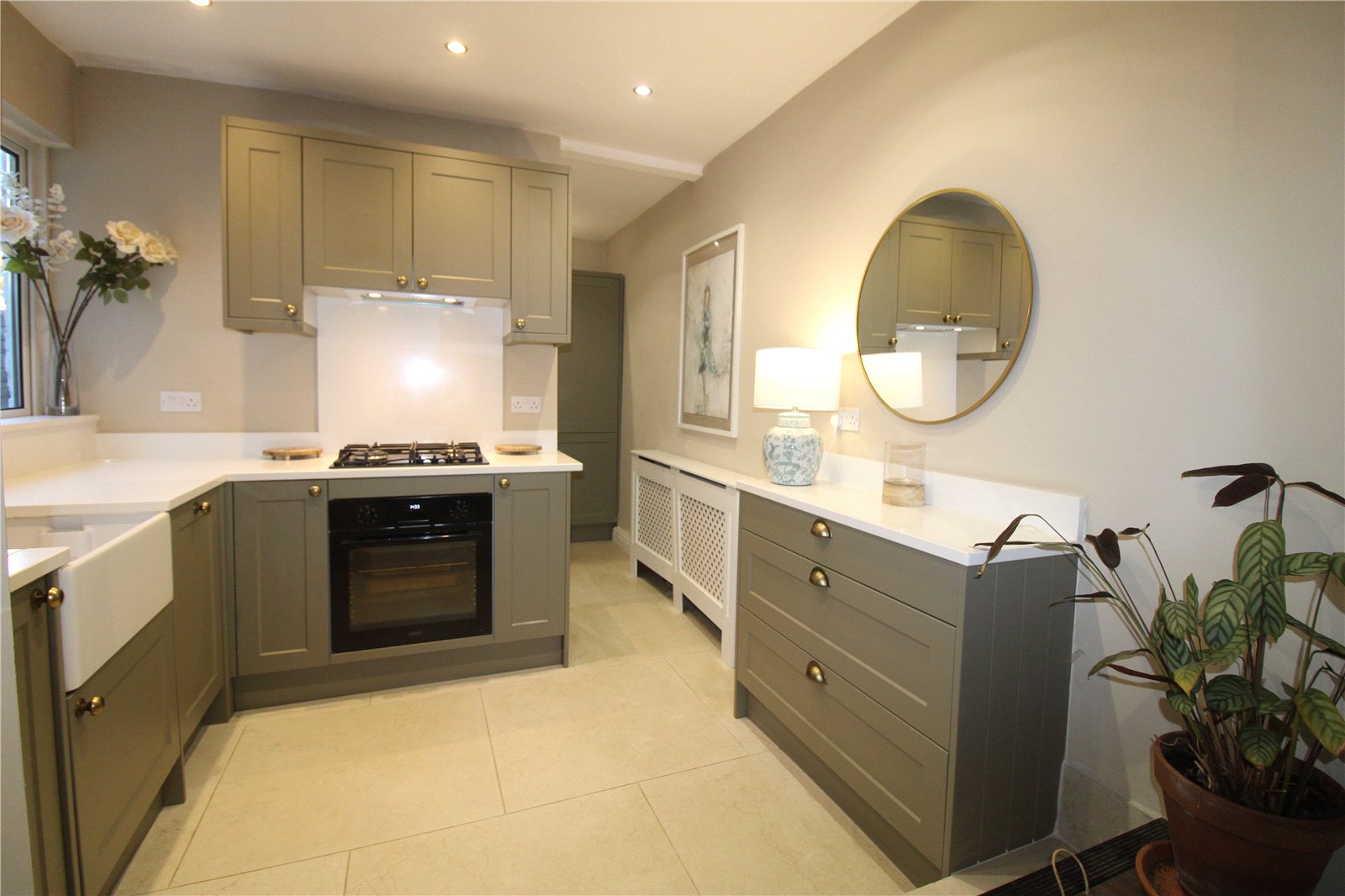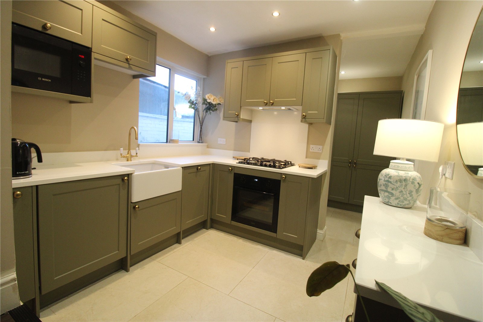 Kitchen 9' x 8'3" (2.74m x 2.51m). A lovely and recently refitted kitchen comprising a range of eye and base level units with Quartz worksurfaces over, Butler style sink with mixer tap over, built in appliances to include electric oven with gas hob and stainless steel extractor over, microwave, dishwasher and washing machine, tiled floor, double panel radiator, open through to utility area.