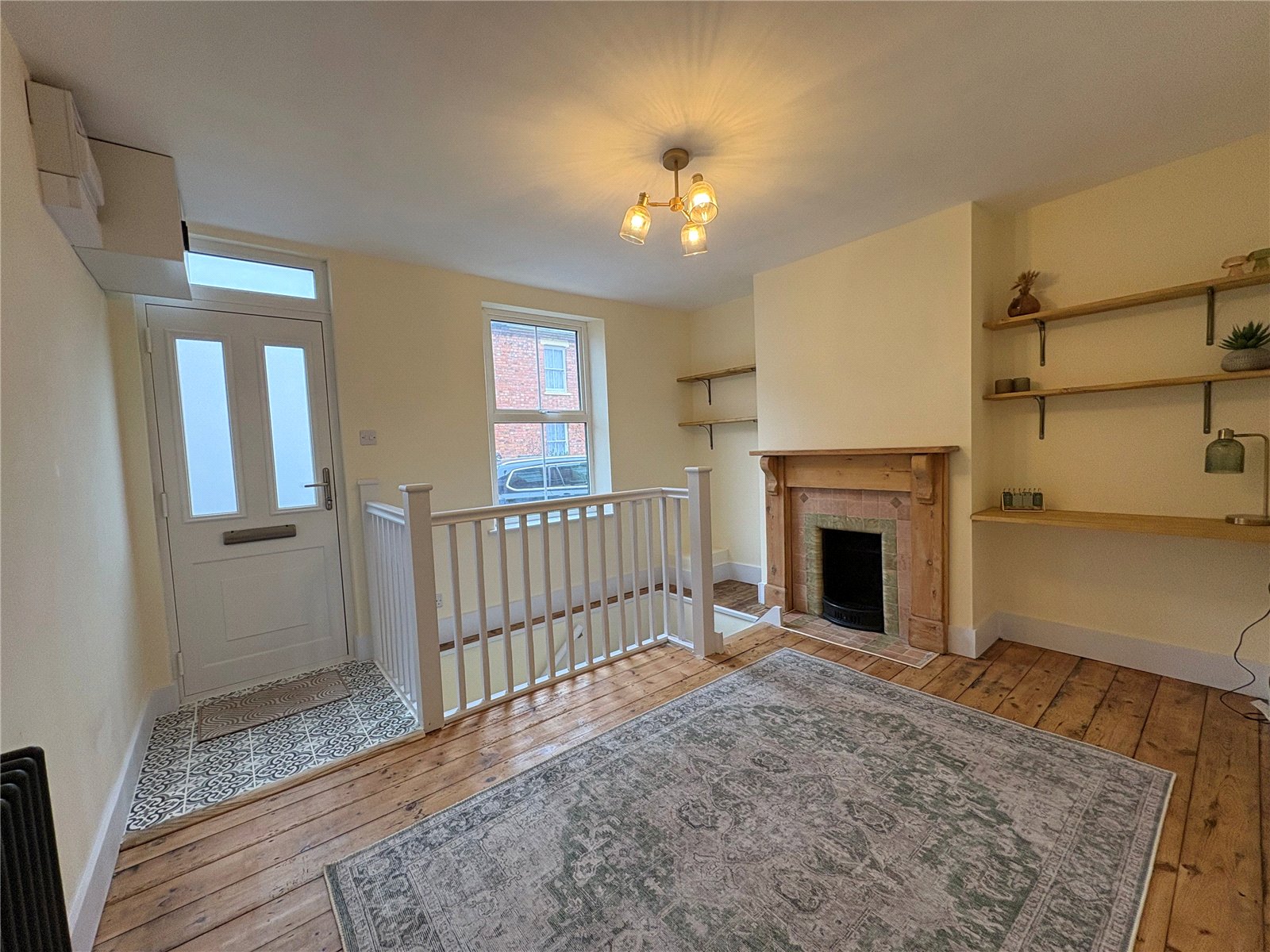 Reception Room Two 12'5" (3.78m) x 11'2" (3.4m) Including Stairs. A lovely second reception room which sets the scene for this lovely family home which could be used for multiple purposes and ideal for a sitting room, study or snug. The focal point of the room is a feature open fire place with large pine surround and tiled hearth, the room is given added character with stripped pine flooring and deep skirting, dog leg stairs with white spindles descend to the ground floor, decorative pine shelving, feature radiator, newly installed consumer unit, Upvc double glazed window to front aspect, walkway through to lounge with a pine door to a large built in storage cupboard between the two rooms