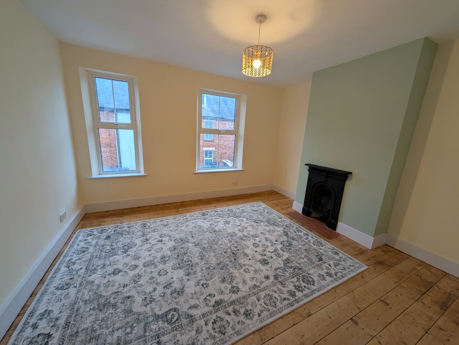 Bedroom Two 12'5" x 11'2" (3.78m x 3.4m). A generous size second bedroom with the focal point being a decorative cast feature fireplace with tiled hearth, stripped pine floor and deep skirting, two Upvc double glazed windows to front aspect, double panel radiator